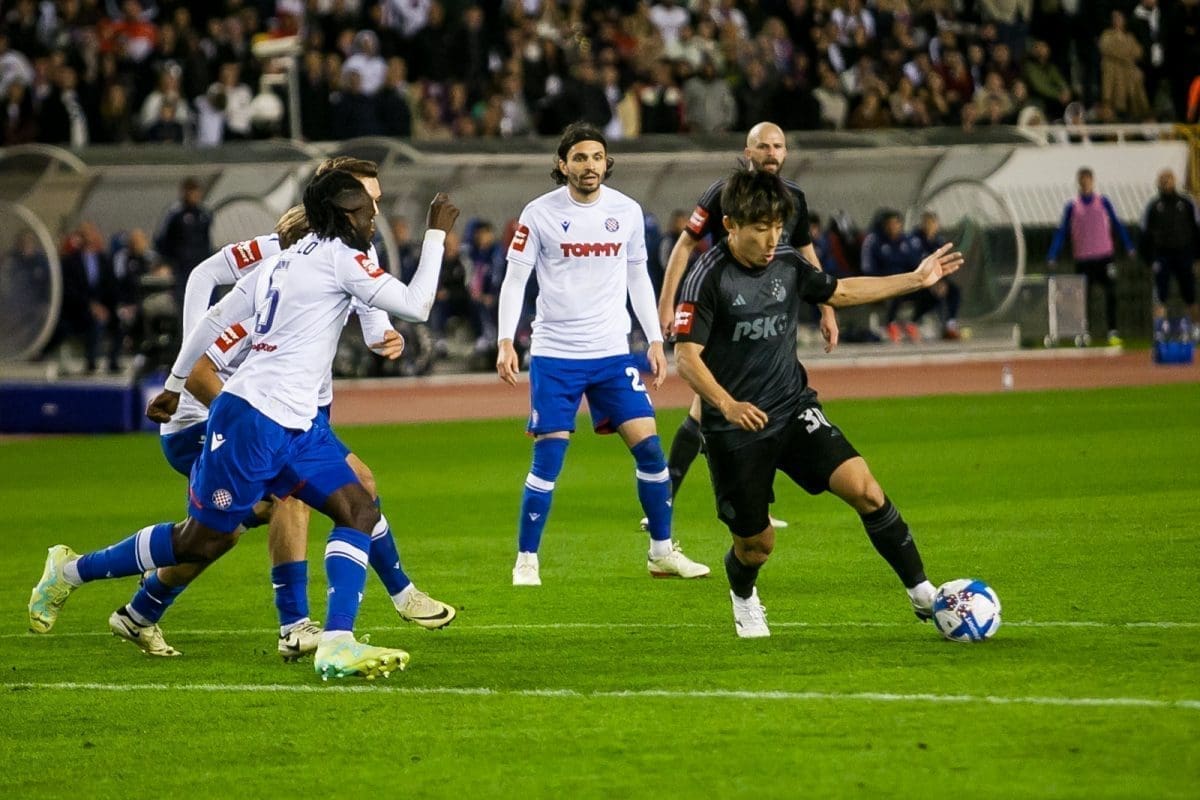 Baturina je u 19. minuti ubacio iz slobodnog udarca, Livaja je intevenirao. Potom je Ademi iz ničega pao kao pokošen pa se zbog njegovih potreba morala zaustaviti utakmica. Kanekov je slobodan udarac iz 25. minute Pukštas odbio u korner. Moufi je u 28. minuti prošao po desnoj strani i ubacio loptu u peterac, ali Livaja je nije uspio najbolje zahvatiti. Kaneko je požutio u 36. minuti nakon starta nad Krovinovićem.