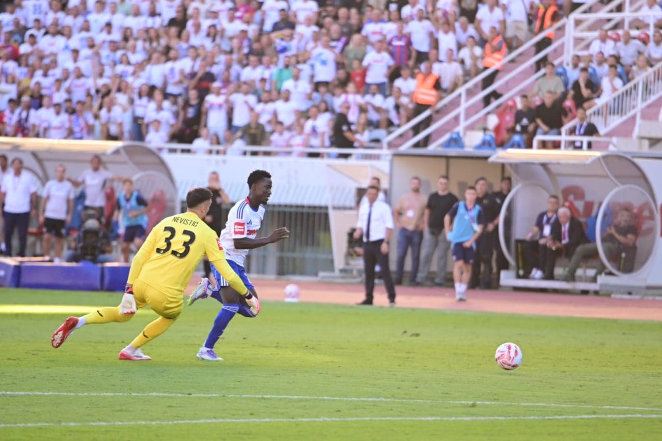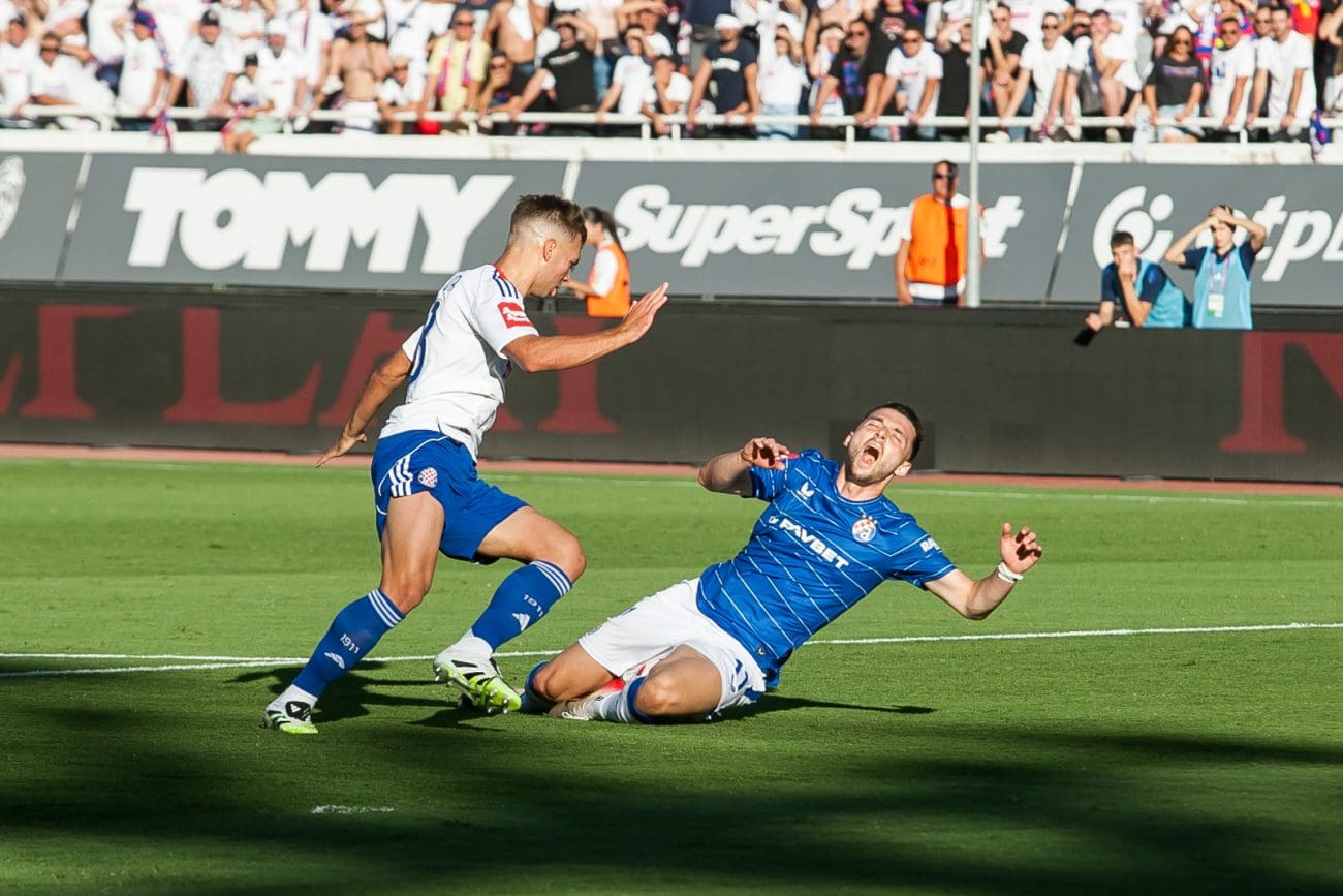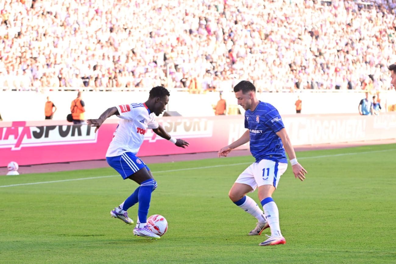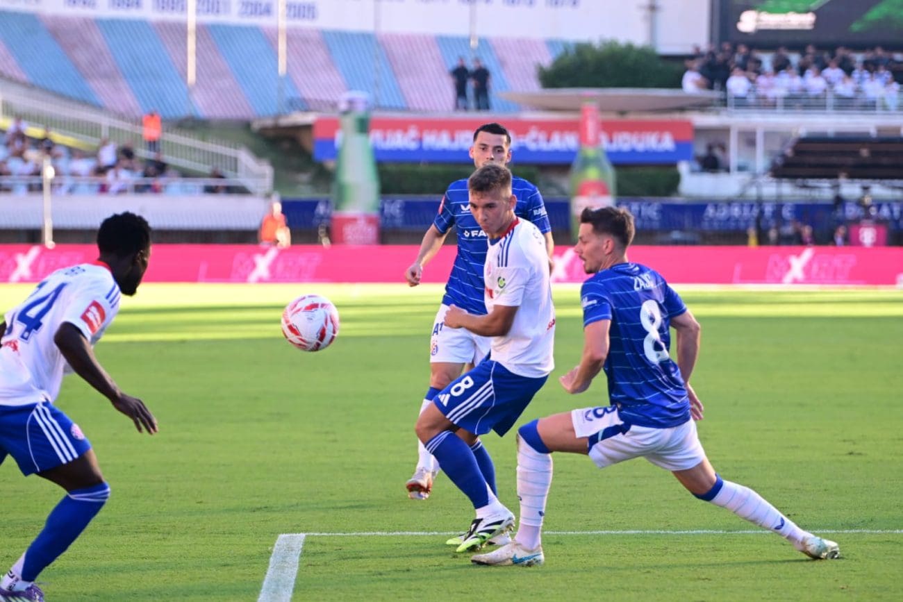 Nogometaši Hajduka danas su s početkom od 17 sati igrali protiv Dinama na Poljudu u derbiju 7. kola SuperSport HNL, a konačni je rezultat bio 0:2 u korist Dinama, u 44. je minuti mrežu zatresao Hoxha, a u 81. Bakrar.