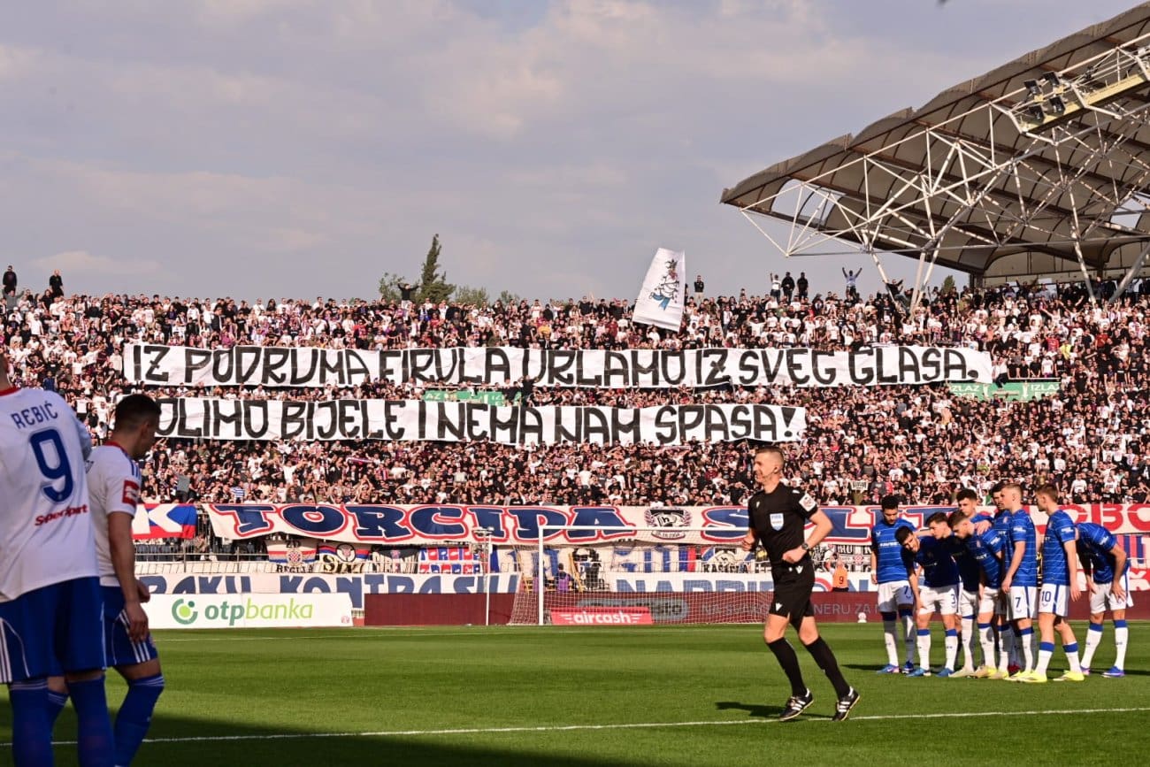 U 80. je minuti uslijedio osmominutni prekid utakmice zbog bakljade BBB-a.