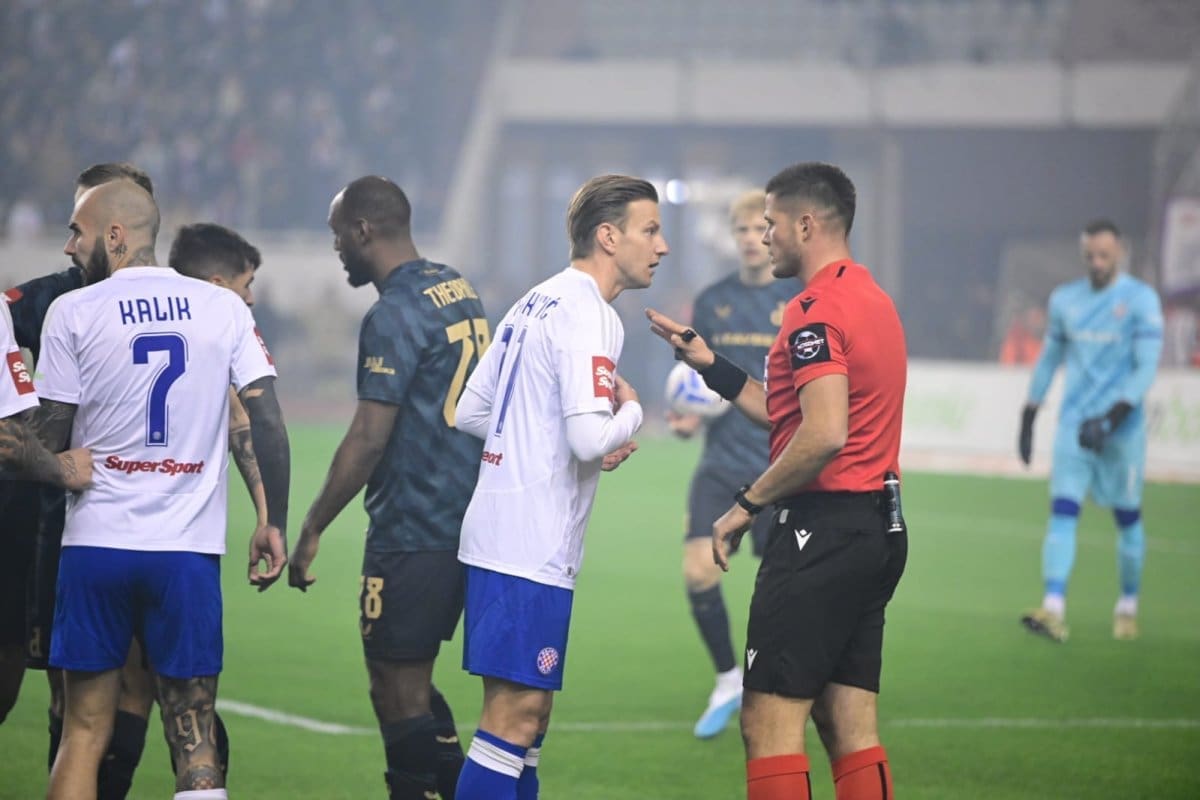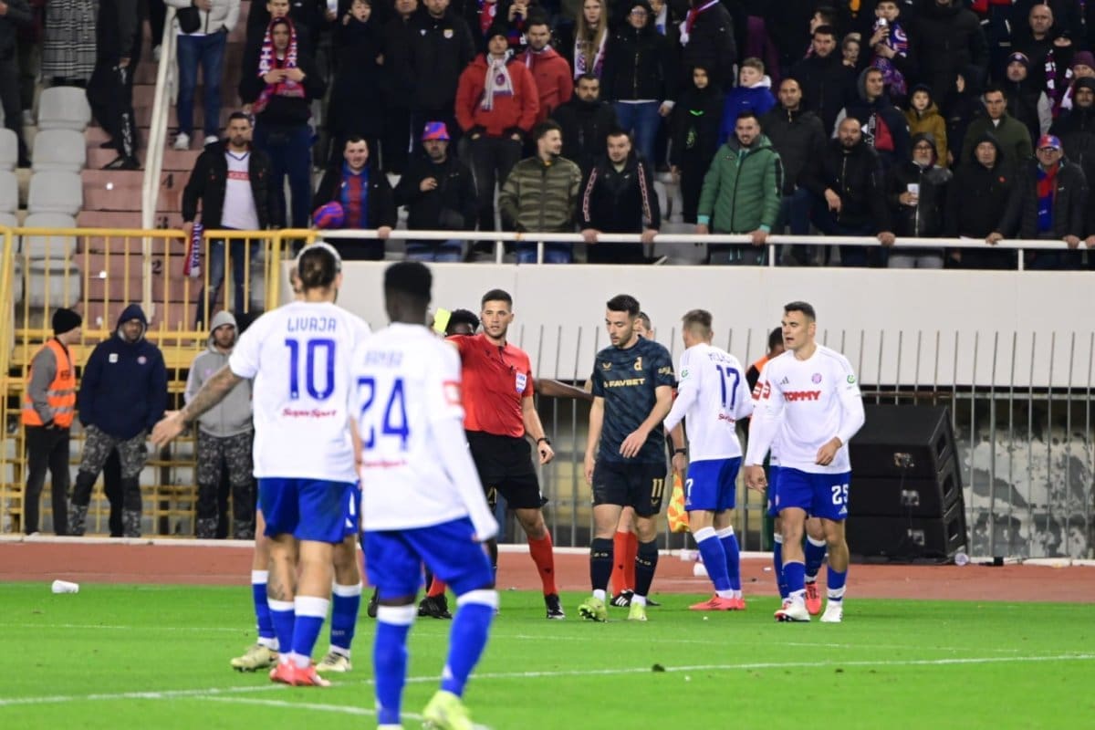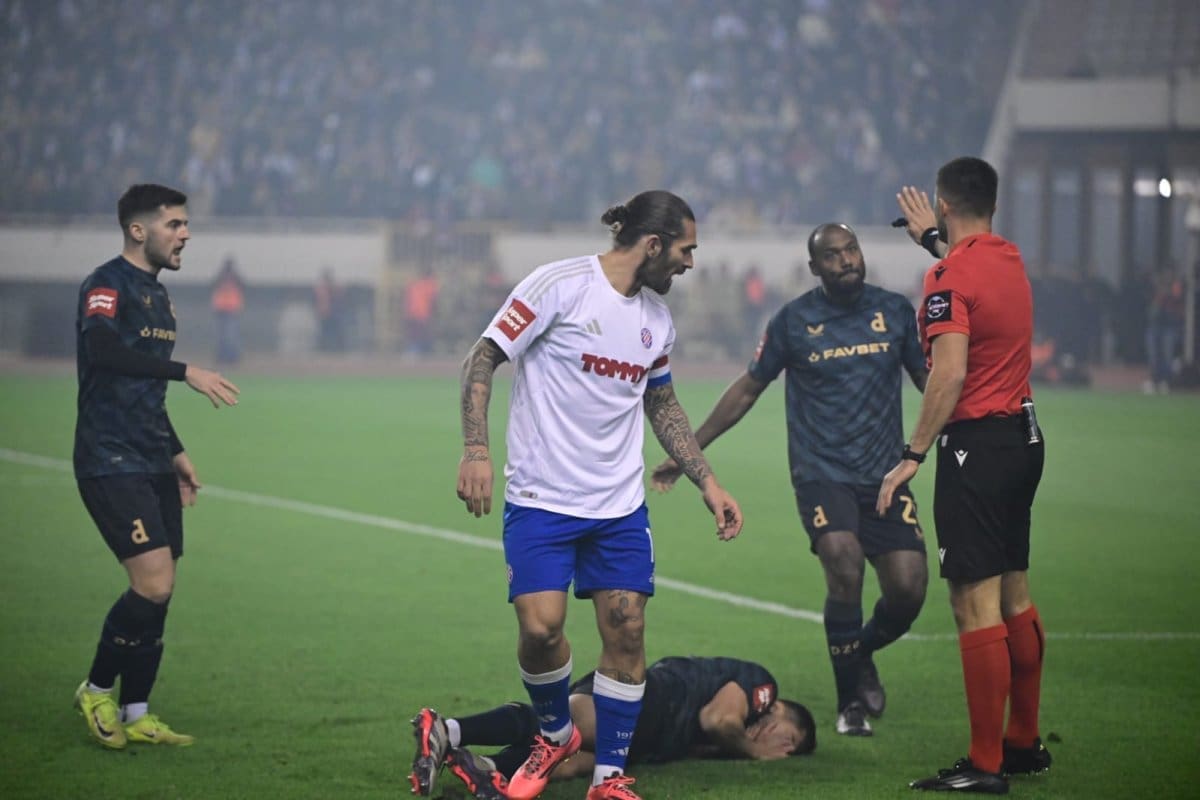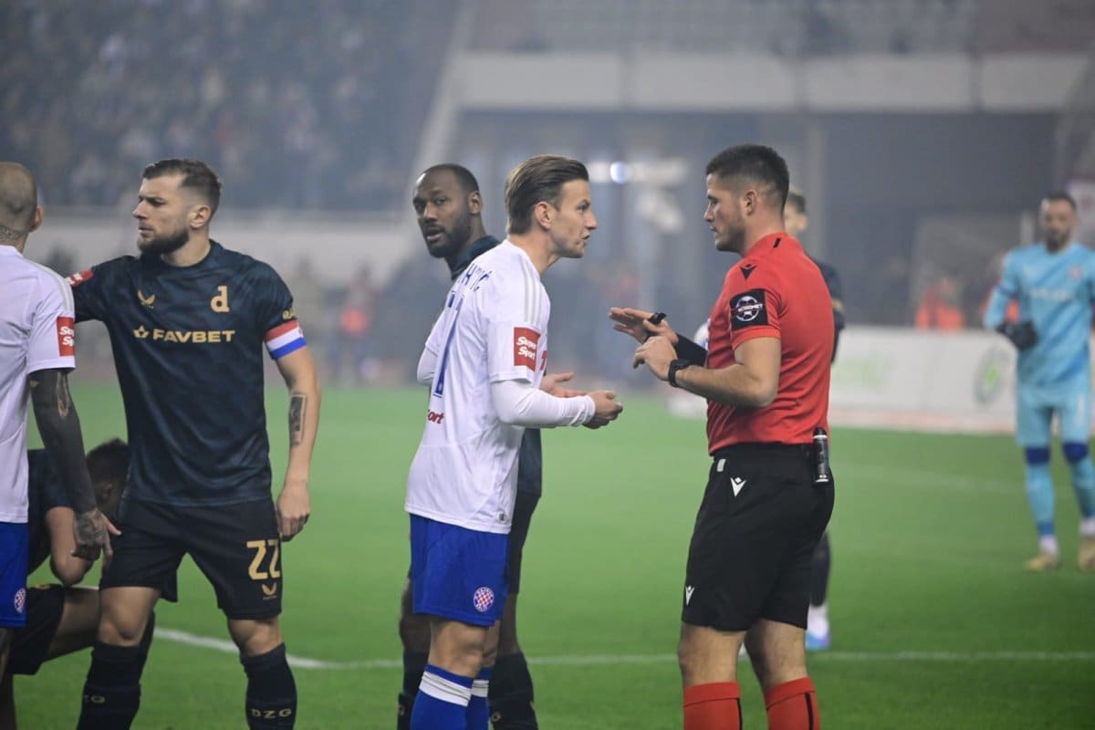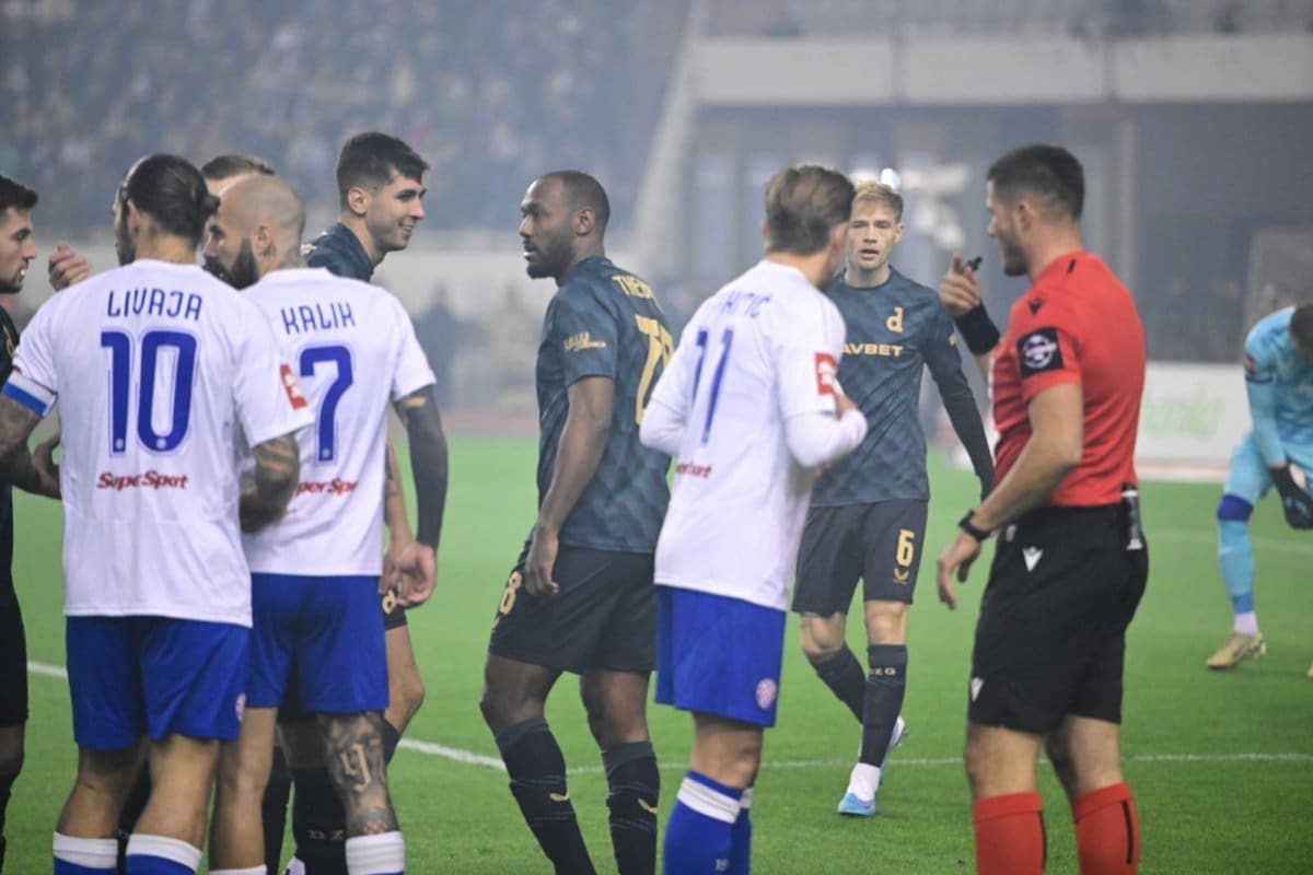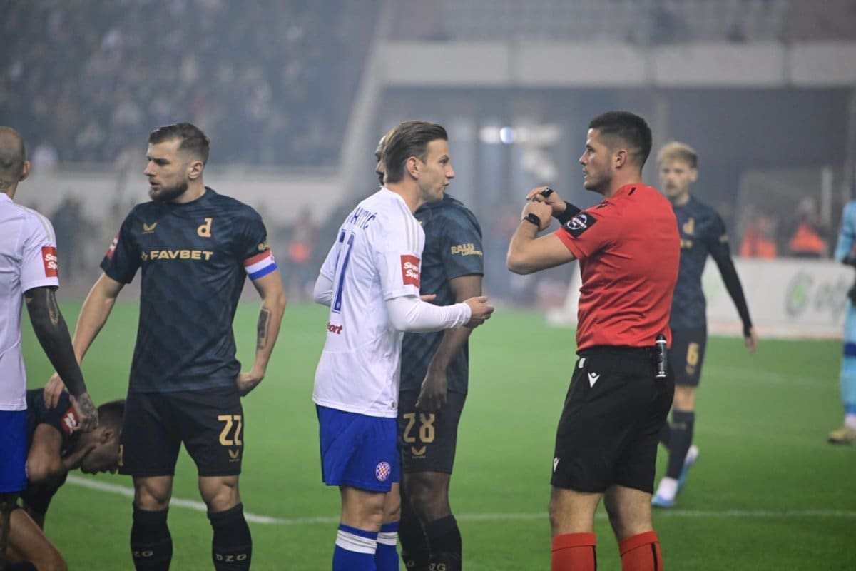 88' - Serija prekršaja nad Hajdukovcima rezultirala je žutim kartonom nakon što je pokosio Dialla i Krovinovića kojem se ukazivala pomoć. Kolarić je potom išao gledati VAR zbog potencijalnog crvenog katrona Roga, koji mu je na kraju i dosudio.
