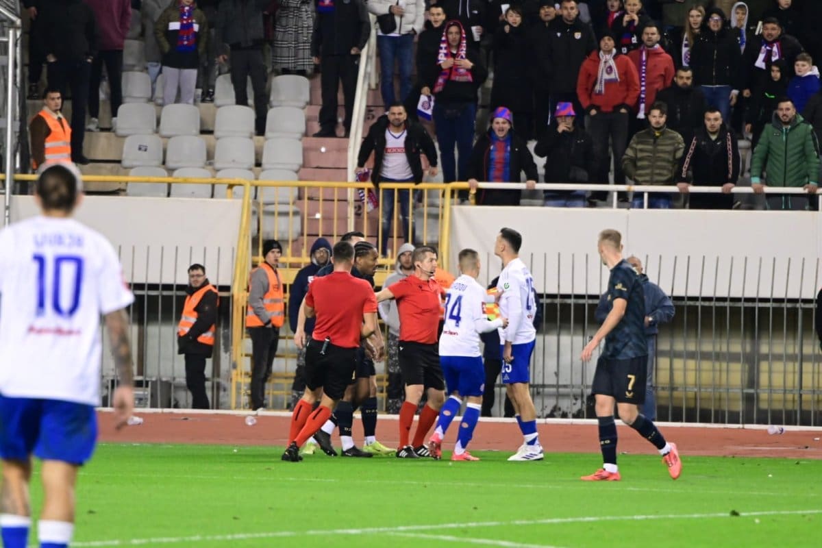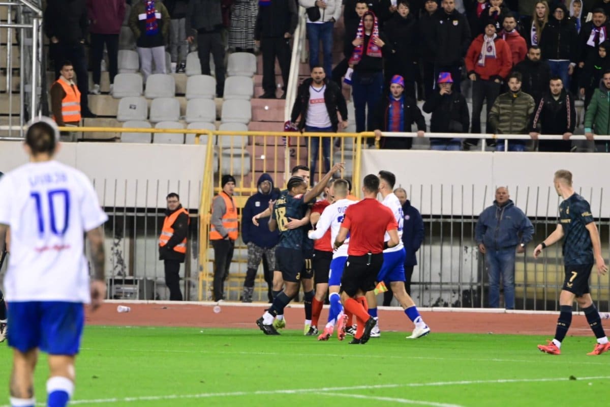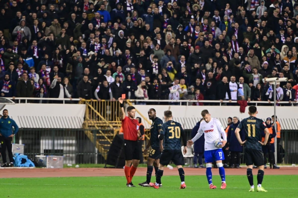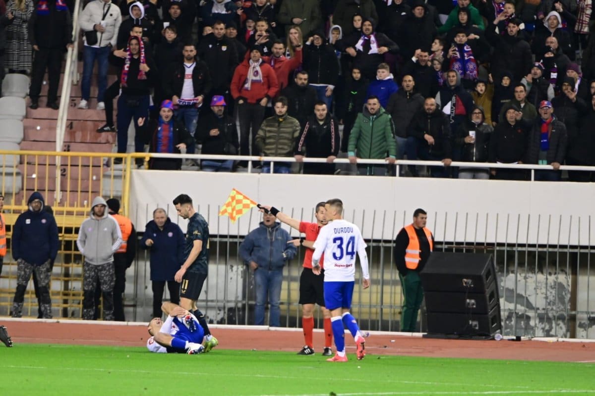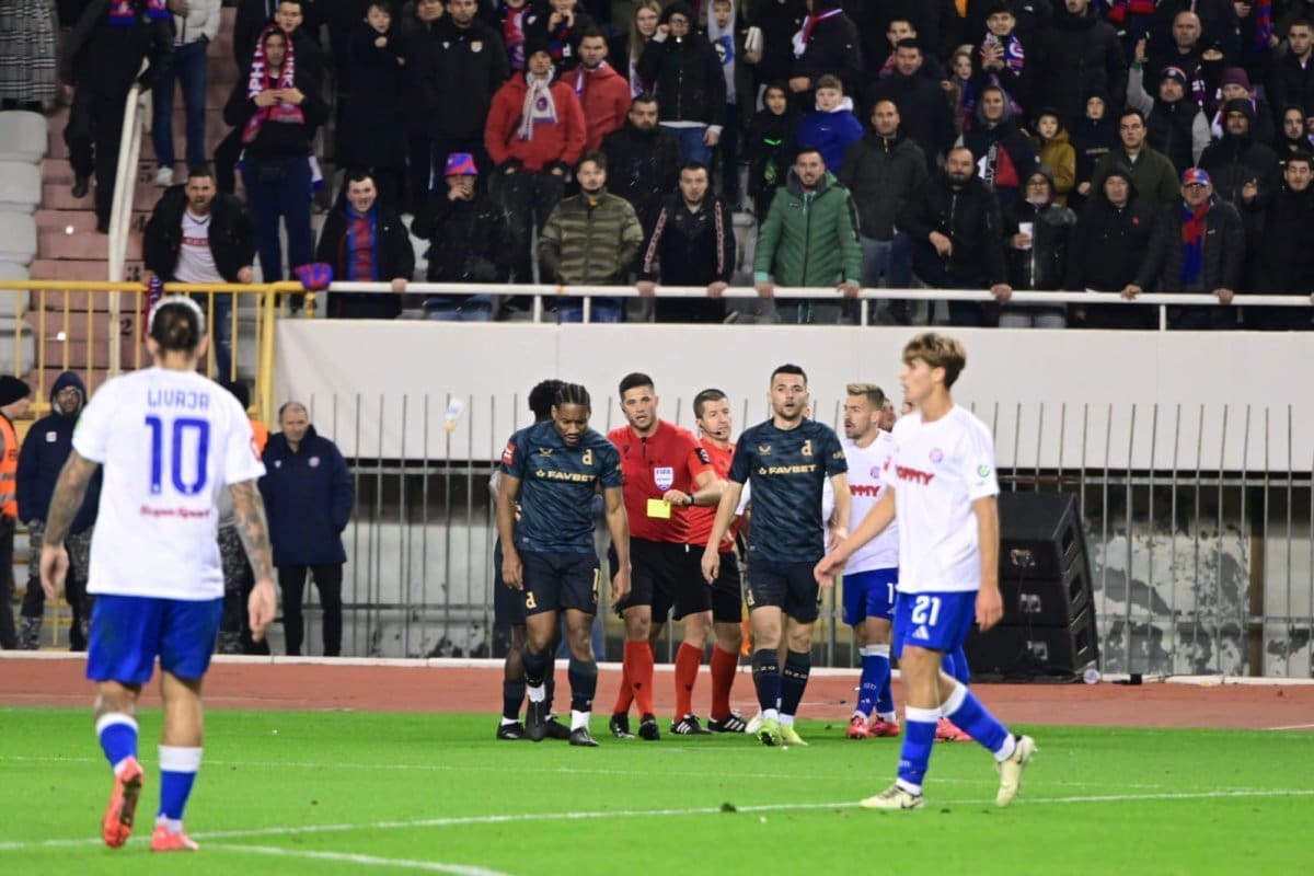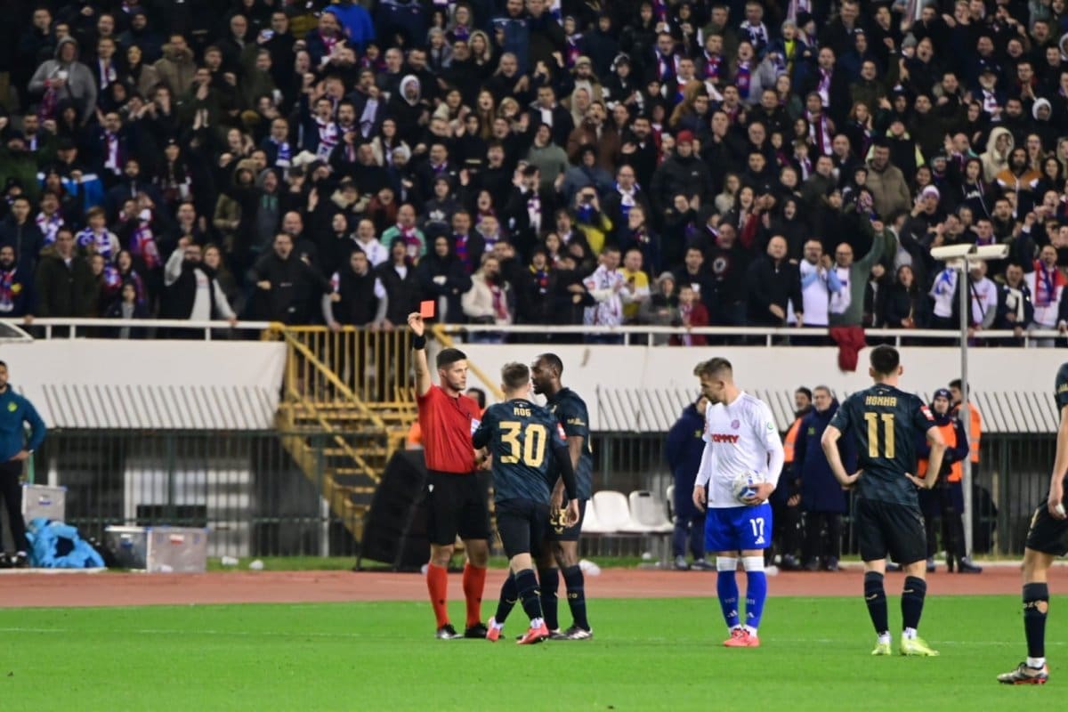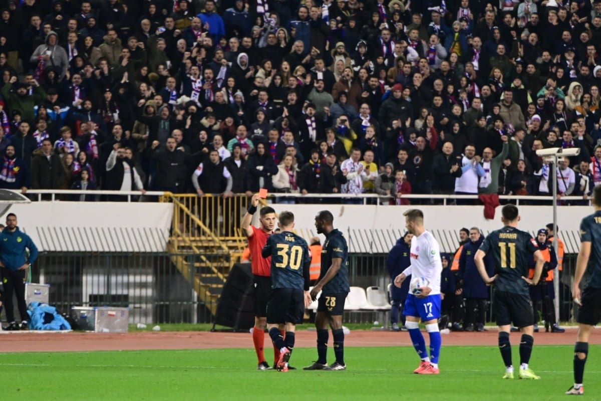 88' - Serija prekršaja nad Hajdukovcima rezultirala je žutim kartonom nakon što je pokosio Dialla i Krovinovića kojem se ukazivala pomoć. Kolarić je potom išao gledati VAR zbog potencijalnog crvenog katrona Roga, koji mu je na kraju i dosudio.