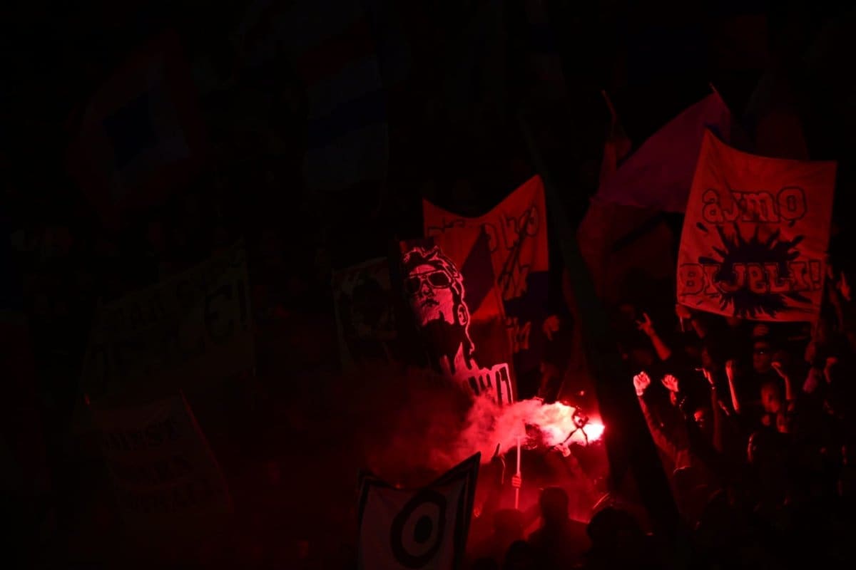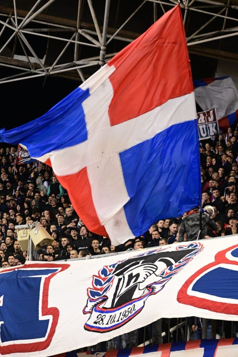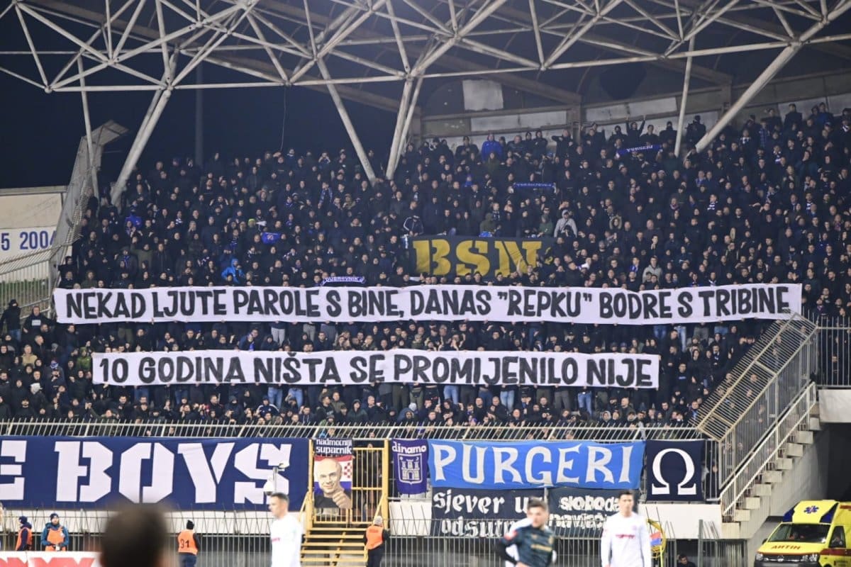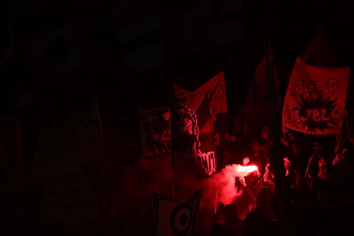 74' - Igra je nastavljena nakon 4 minute, a BBB bacili su dvije bengalke na zapadnu tribinu među navijače.