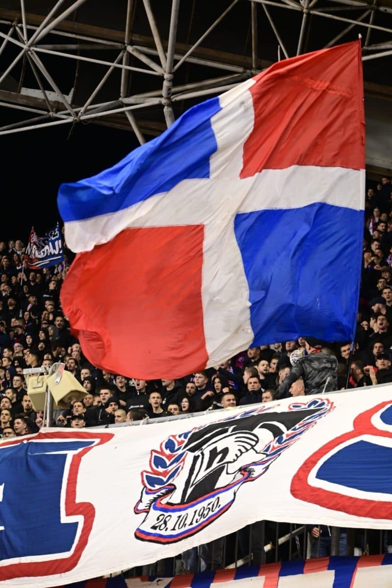 21' - Dinamo nije zaprijetio iz kornera, a Hajduk je potom krenuo u kontra-napad: Biuk je prošao po lijevoj strani i tražio Livaju, no Zagorac je bio prvi na lopti. To je podignulo atmosferu i Istok i Zapad ujedinili su se sa Sjeverom.