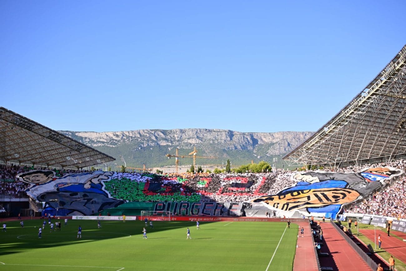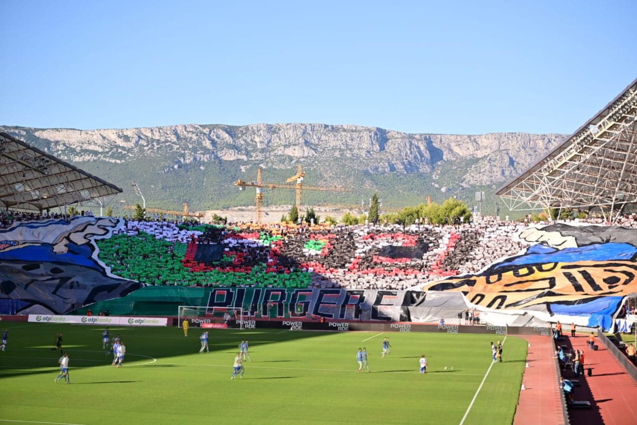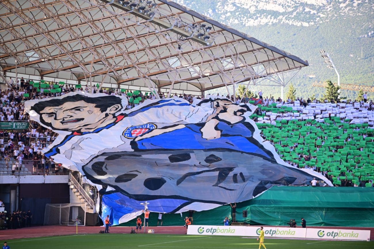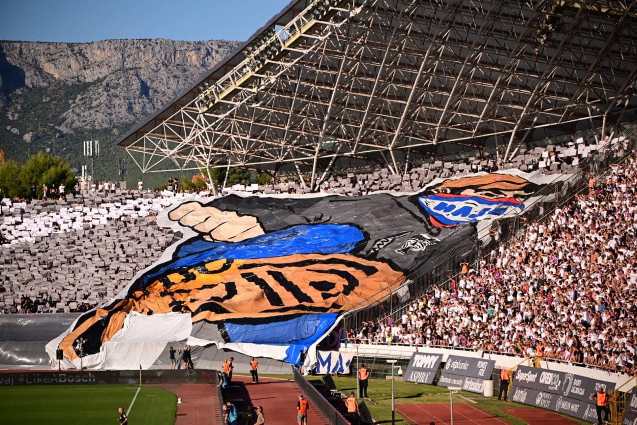 Uoči samog početka susreta Torcida je preko Sjevera razvila koreografiju: dva navijača Hajduka i njihove tenisice okrenute prema terenu. Sve je postalo puno jasnije kada su izmijenili dio koreografije: na tribini je osvanuo natpis „GAZI“, a na ogradi „PURGERE“.