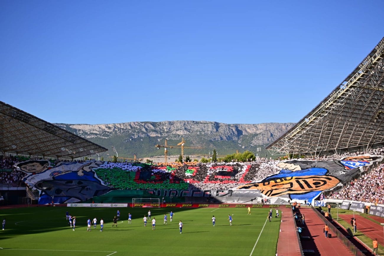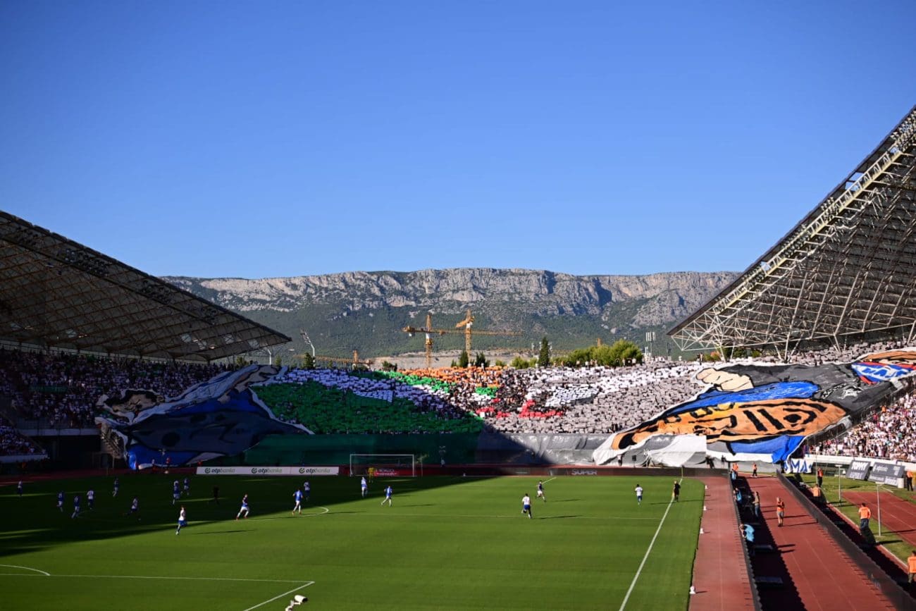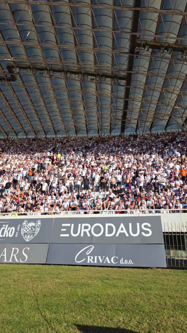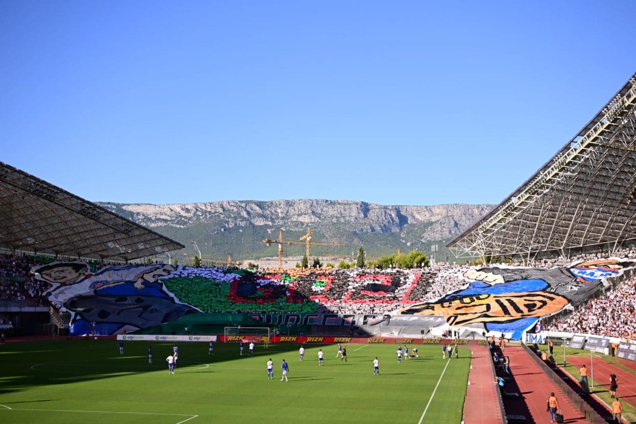 Uoči samog početka susreta Torcida je preko Sjevera razvila koreografiju: dva navijača Hajduka i njihove tenisice okrenute prema terenu. Sve je postalo puno jasnije kada su izmijenili dio koreografije: na tribini je osvanuo natpis „GAZI“, a na ogradi „PURGERE“.