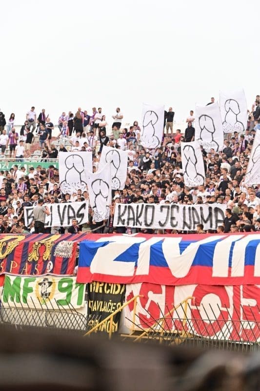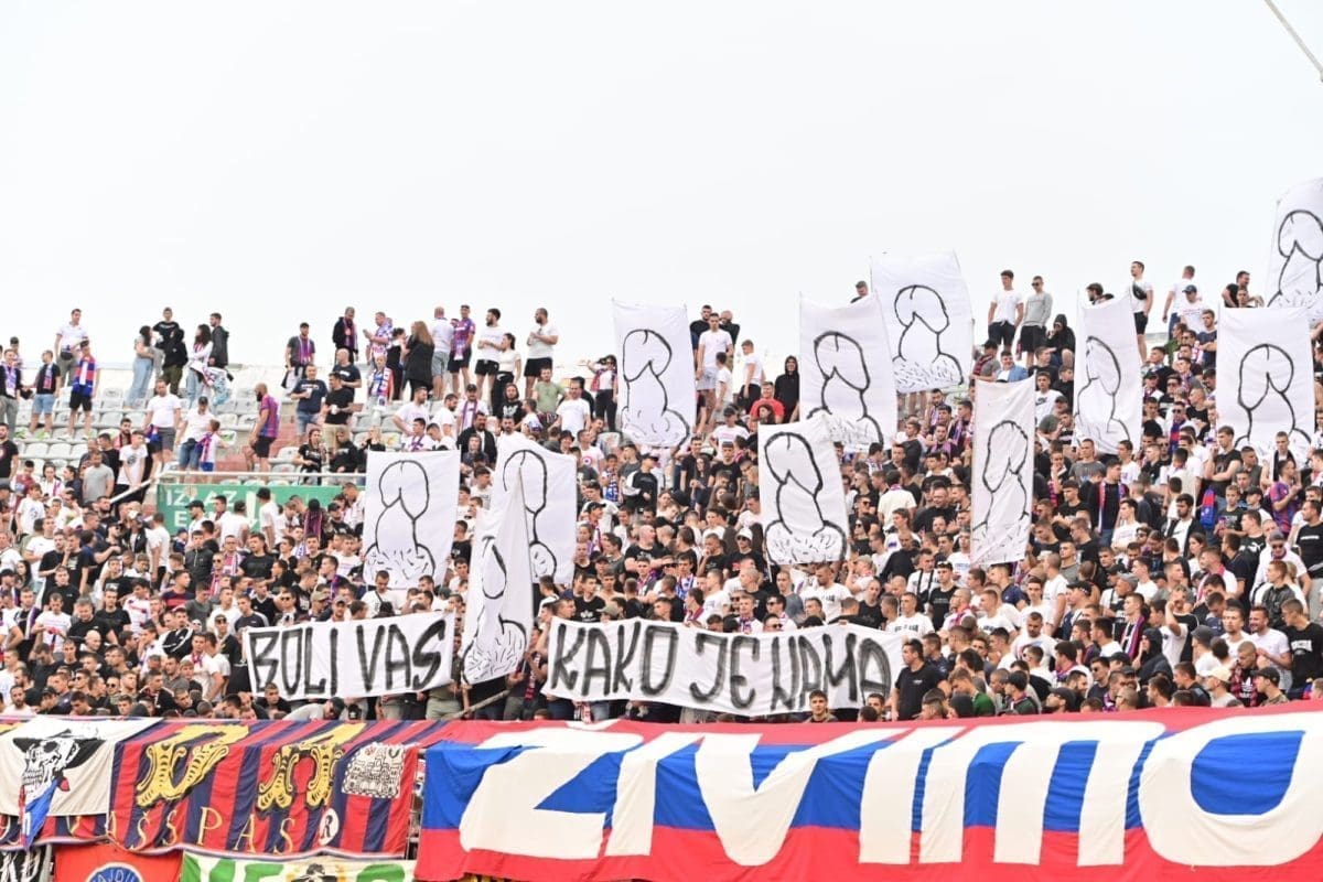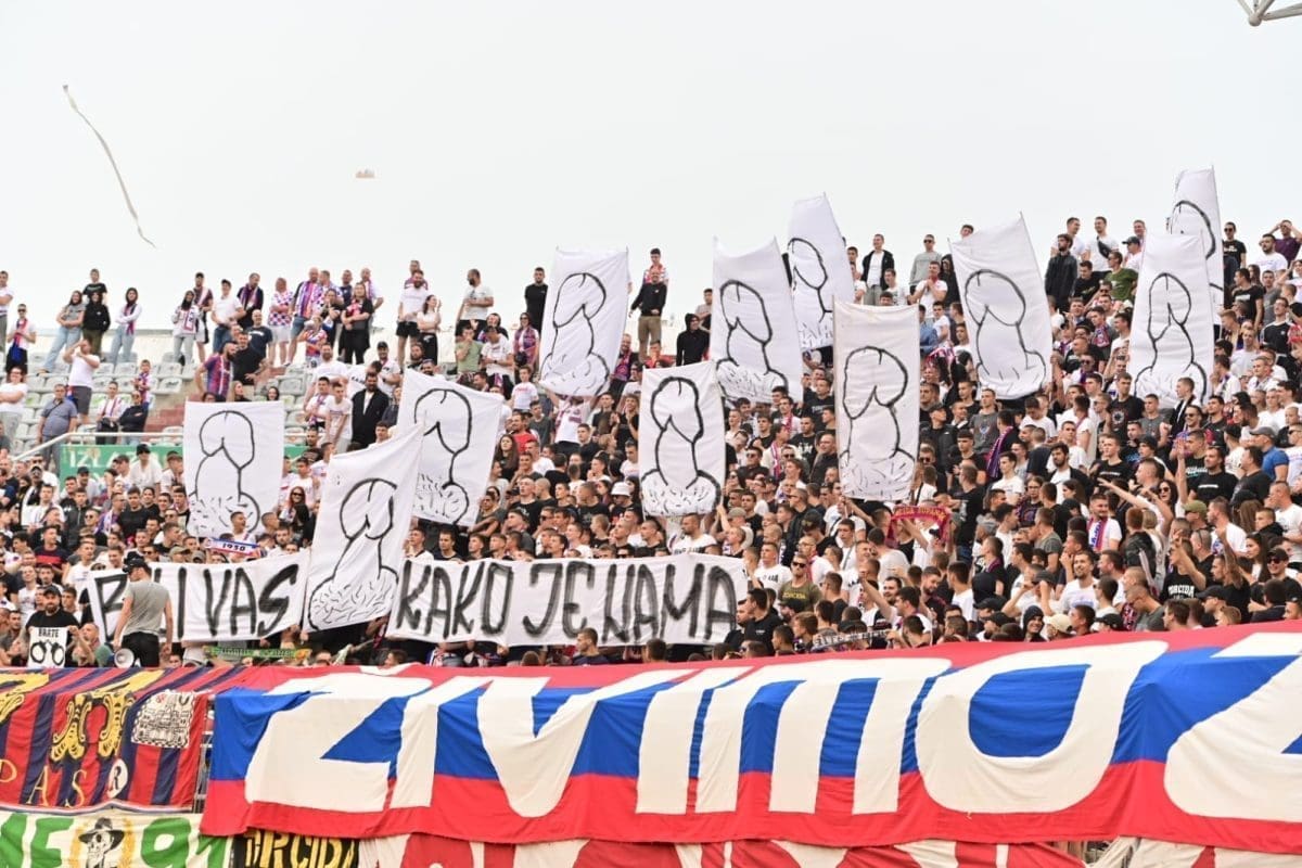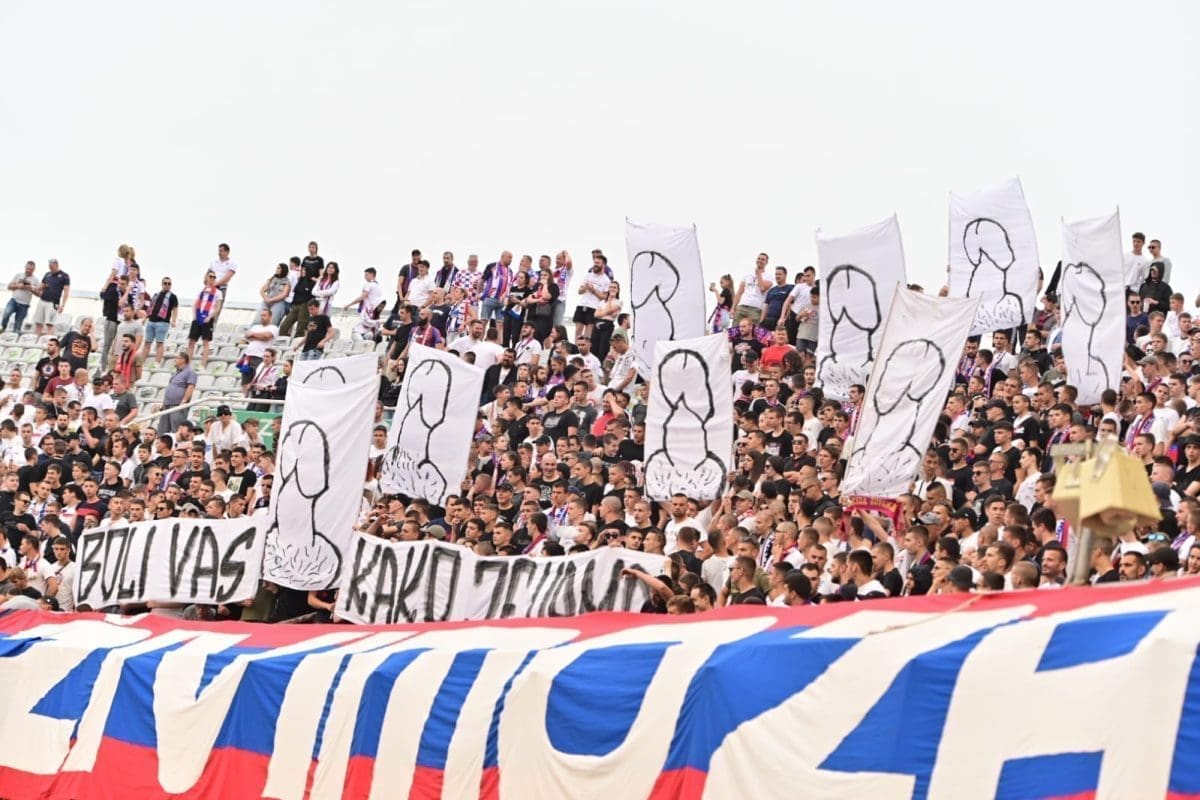 Hajduk nije kažnjen zbog crteža spolovila na transparentima, ali pale su kazne za ostale stvari. Hajduk će zbog transparenata i zastava ovog puta platiti ukupno 7700 eura.