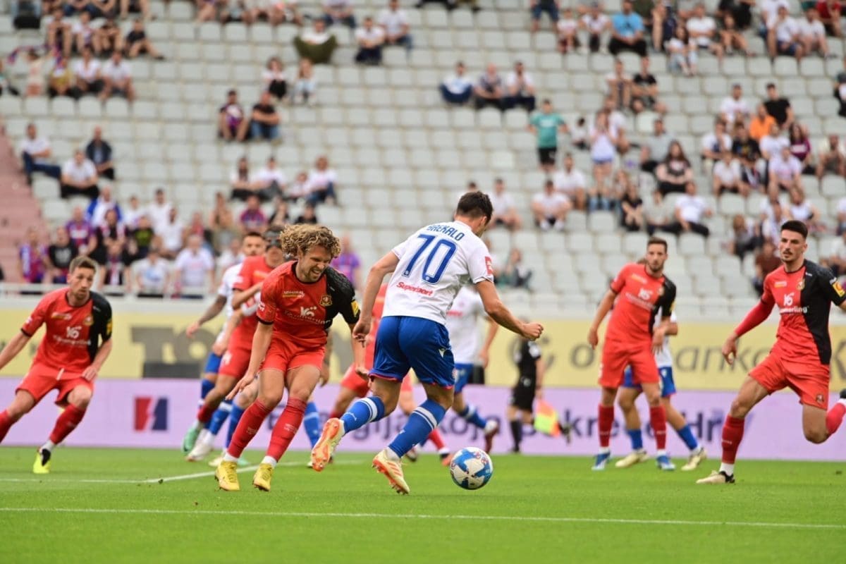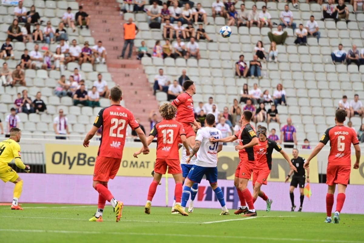U 9. minuti nitko od domaćih nije popratio Perišićev ubačaj u gostujući kazneni prostor. U 11. je minuti Munskgaard dobro reagirao kad je Diallo utrčao u Goričin šesnaesterac. Minutu kasnije odlična prilika za Hajduk – Brekalov je udarac s 12 metara završio u bloku, Pukštas je prihvatio odbijanac, ali na kraju je Radošević izišao kao pobjednik duela.