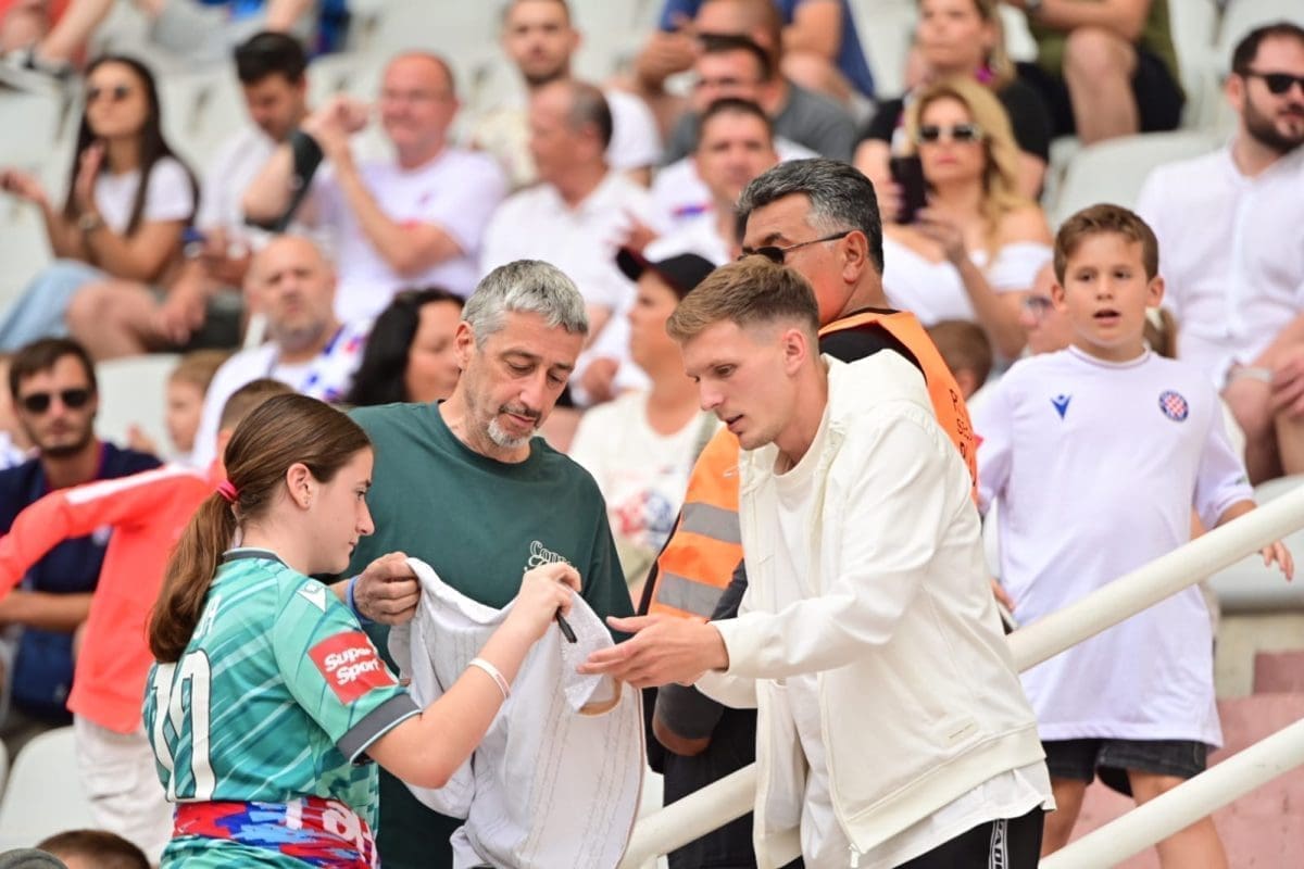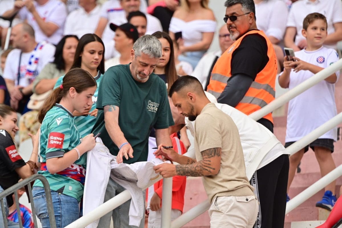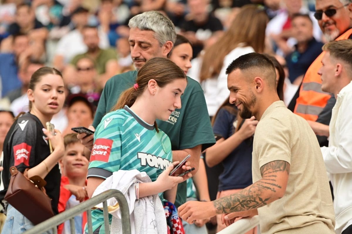 U 69. minuti Perišić je izišao iz igre i svoju kapetansku traku prepustio Nikoli Kaliniću, a publika je velikim pljeskom pozdravila Melnjaka koji se vratio nakon duge ozljede. Potom je i Noa Skoko zamijenio Trajkovskog.