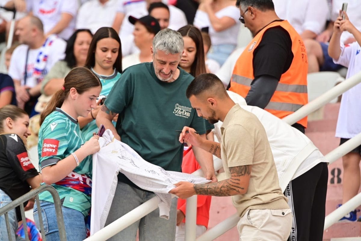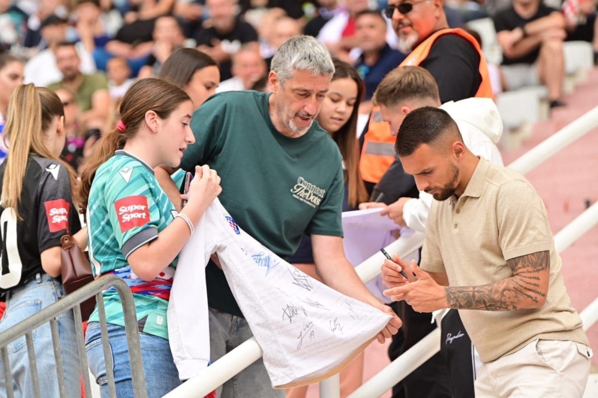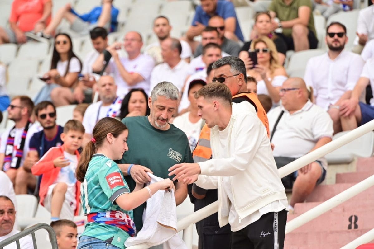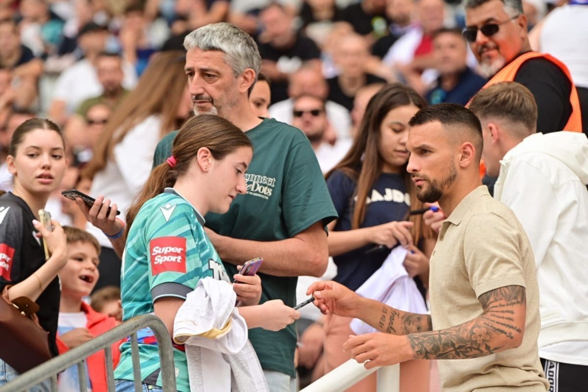 U 69. minuti Perišić je izišao iz igre i svoju kapetansku traku prepustio Nikoli Kaliniću, a publika je velikim pljeskom pozdravila Melnjaka koji se vratio nakon duge ozljede. Potom je i Noa Skoko zamijenio Trajkovskog.