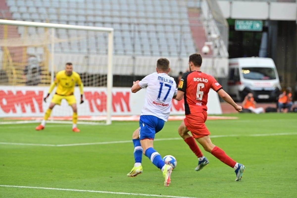 U 23. minuti Gorica je povela. Napad je počeo na desnoj strani preko Štigleca koji je dobro pronašao nečuvanog Rukavinu, a on je s 10-ak metara postavio 0:1.