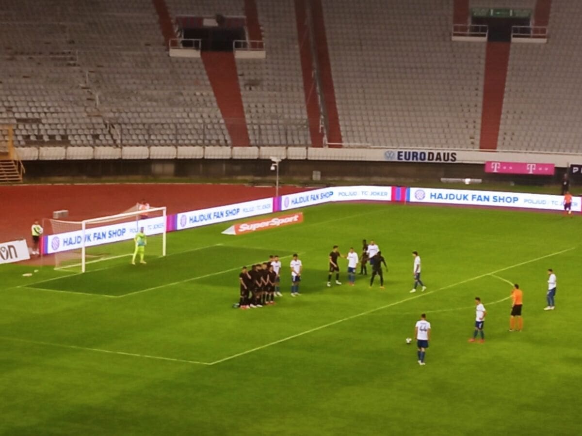 Prvi je prodor na utakmici krenuo preko Muse po desnoj strani, ali Hajdukova je obrana izbacila njegov ubačaj. U 6. je minuti Hamad bio u dobroj poziciji za udarac, ali lopta je otišla nebu pod oblake. U toj je vrlo ranoj fazi Ševelj zamijenio ozlijeđenog Dimitrova.