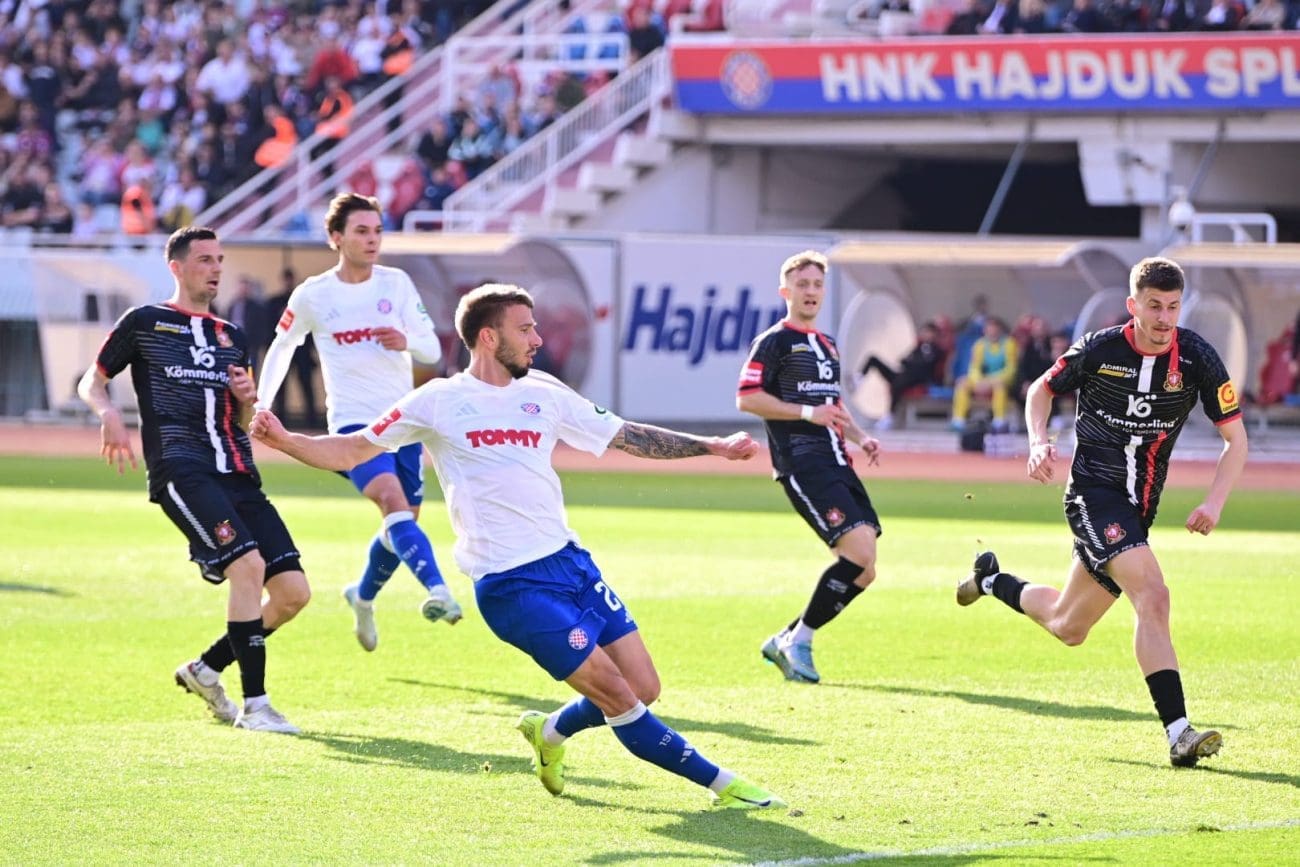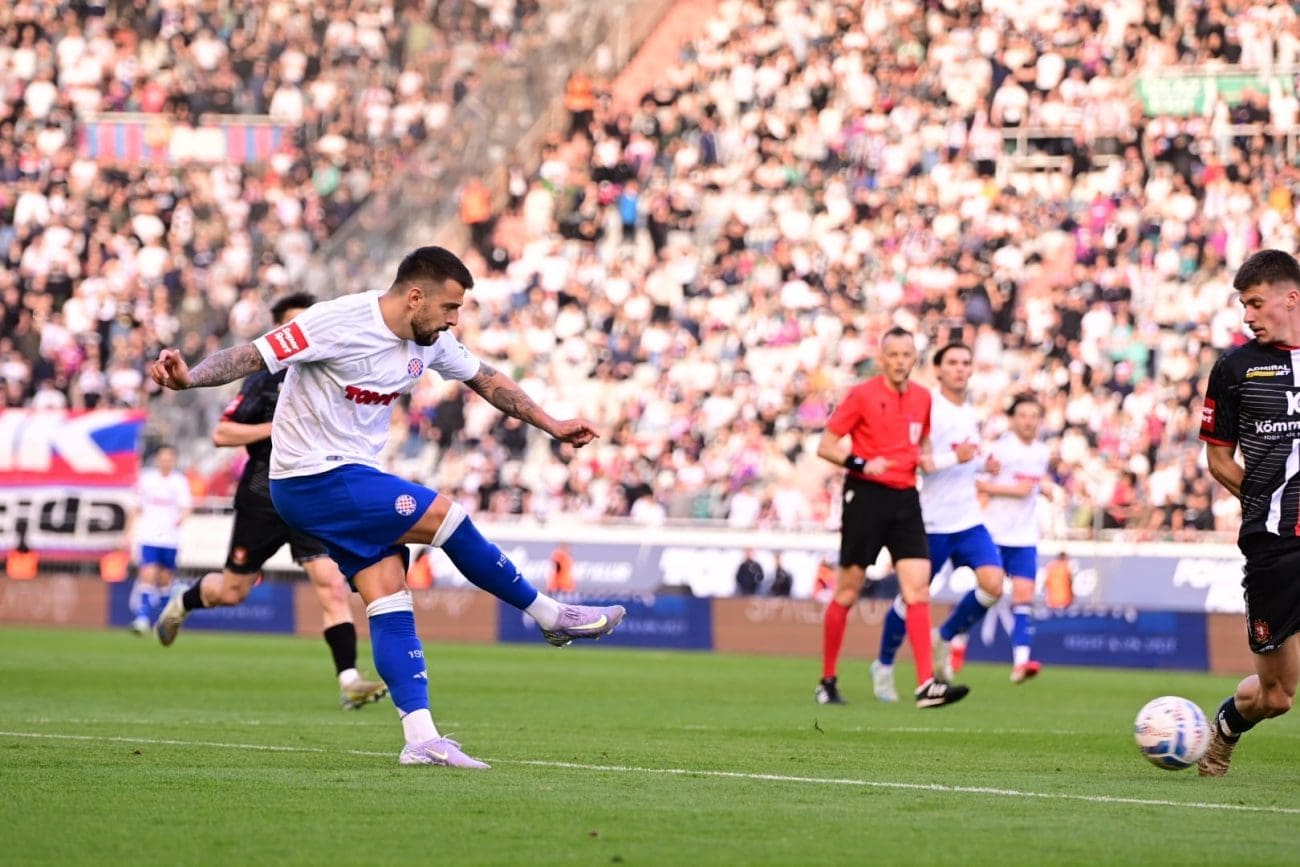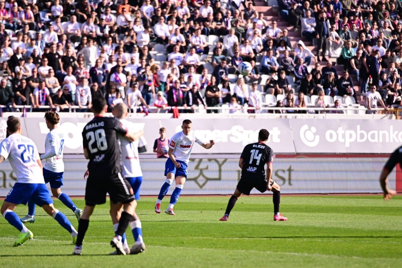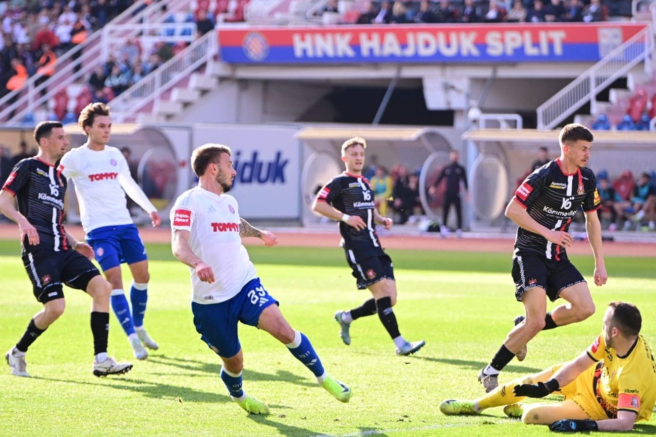 67' - Hajduk je udvostručio svoju prednost: Hrgović je iz daljine bombom matirao Banića za 2:0 i svoj prvijenac u dresu Hajduka.