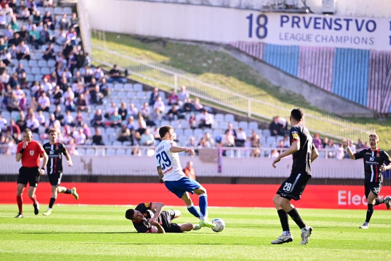 45' - Hajduk je imao još jednu priliku, no bezuspješno. Igrat će se četiri minute sudačke nadoknade.