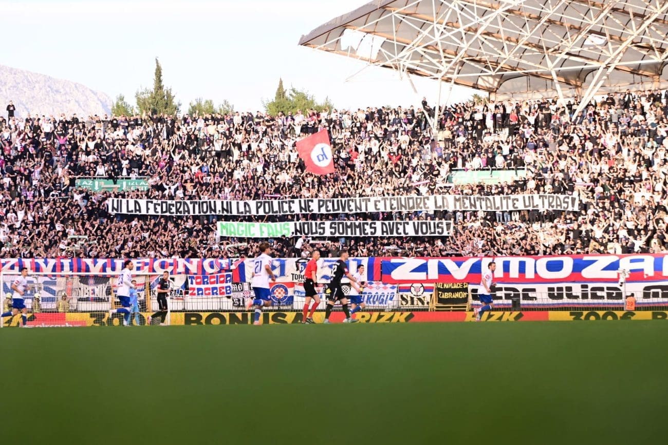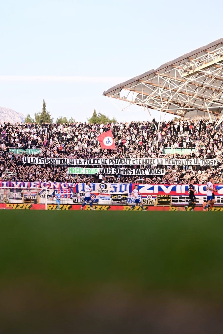 75' - Torcida je istaknula poruku: „NI LA FÉDÉRATION, NI LA POLICE NE PEUVENT É TEINORE LA MENTALITÉ ULTRAS! / MAGIC FANS, NOUS SOMMES AVEC VOUS!“ odnosno „Ni savez, ni policija ne mogu ugasiti mentalitet ultrasa! / MAGIC FANS, UZ VAS SMO!“