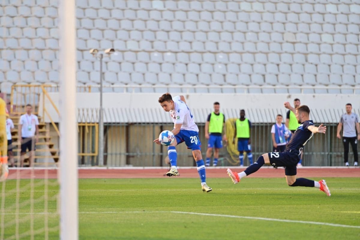 Velika prilika za Hajduk u 66. minuti. Perišić ubacuje na drugu stativu, no Sahiti kasni i ne stiže loptu.