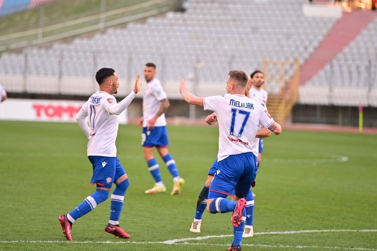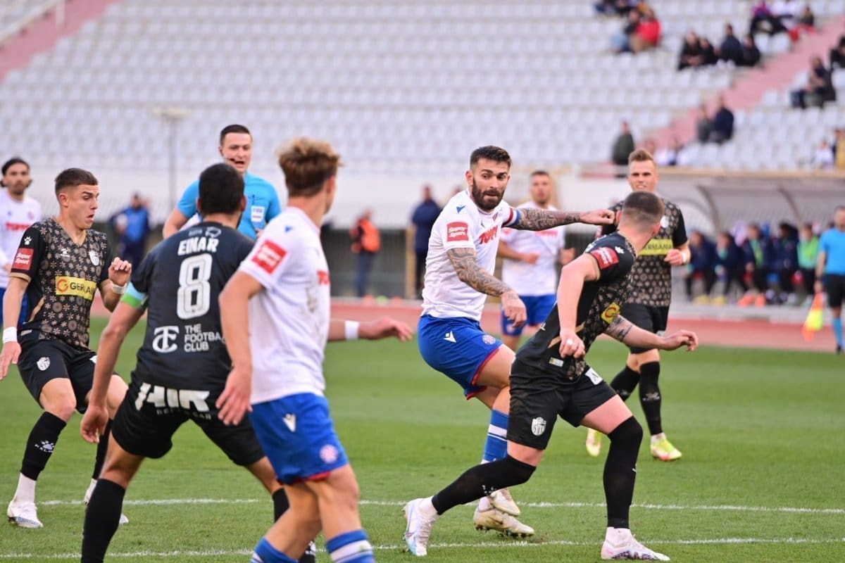 HAJDUK: Lučić - Mikanović, Borevković, Ferro, Melnjak - Grgić, Krovinović - Pukštas, Benrahou, Mlakar - Livaja