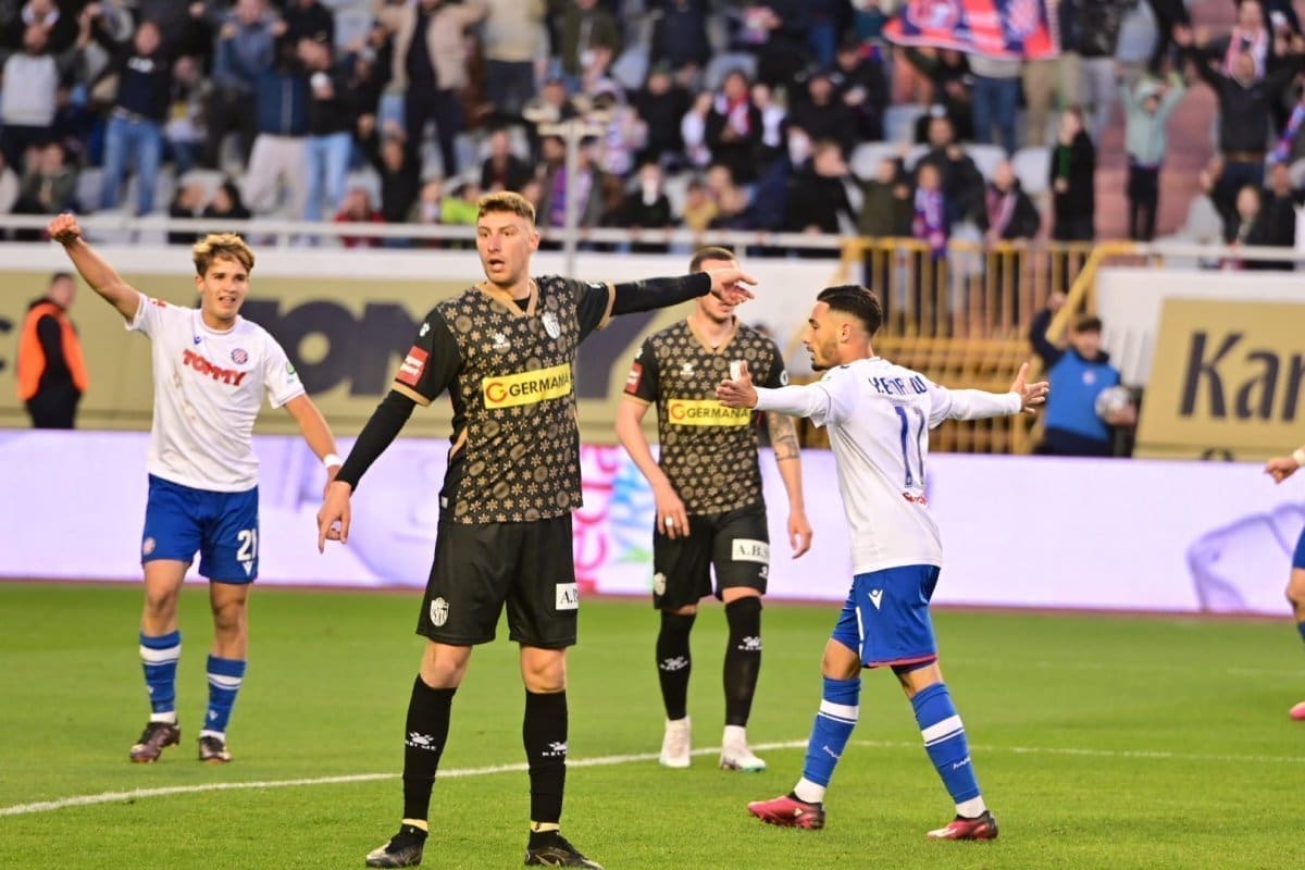 HAJDUK: Lučić - Mikanović, Borevković, Ferro, Melnjak - Grgić, Krovinović - Pukštas, Benrahou, Mlakar - Livaja