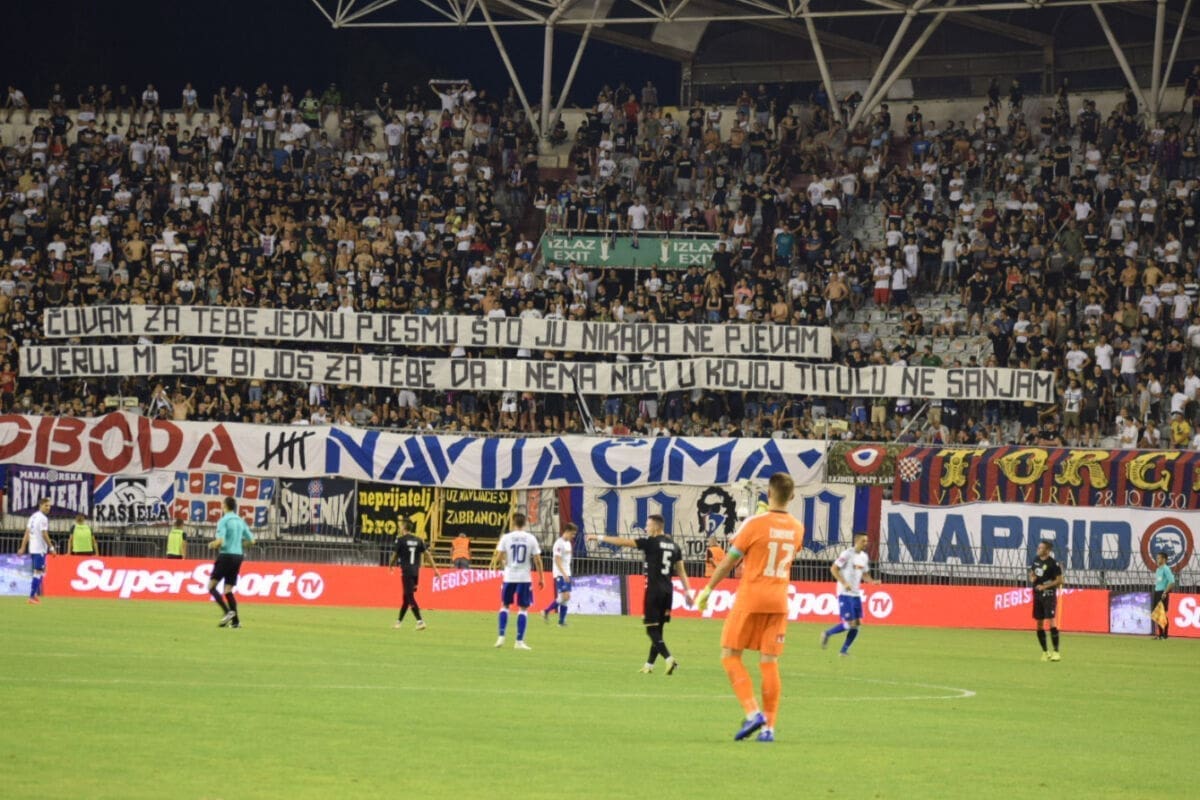 Torcida je početkom drugoga poluvremena na sjeveru razvila transparent s natpisom „Čuvam za tebe jednu pjesmu što ju nikada ne pjevam, vjeruj mi sve bi još za tebe da i nema noći u kojoj titulu ne sanjam“. Minutu kasnije počeli su s pjesmom „Ne mogu ti to oprostiti“. U 54. minuti Jradi je ubacio pred Istrin gol, ali nikoga nije bilo na povratnoj lopti. Potom je lopta nakon akcije na centru stigla do Caktaša, no njegov je udarac iskosa Čondrić obranio nogom.