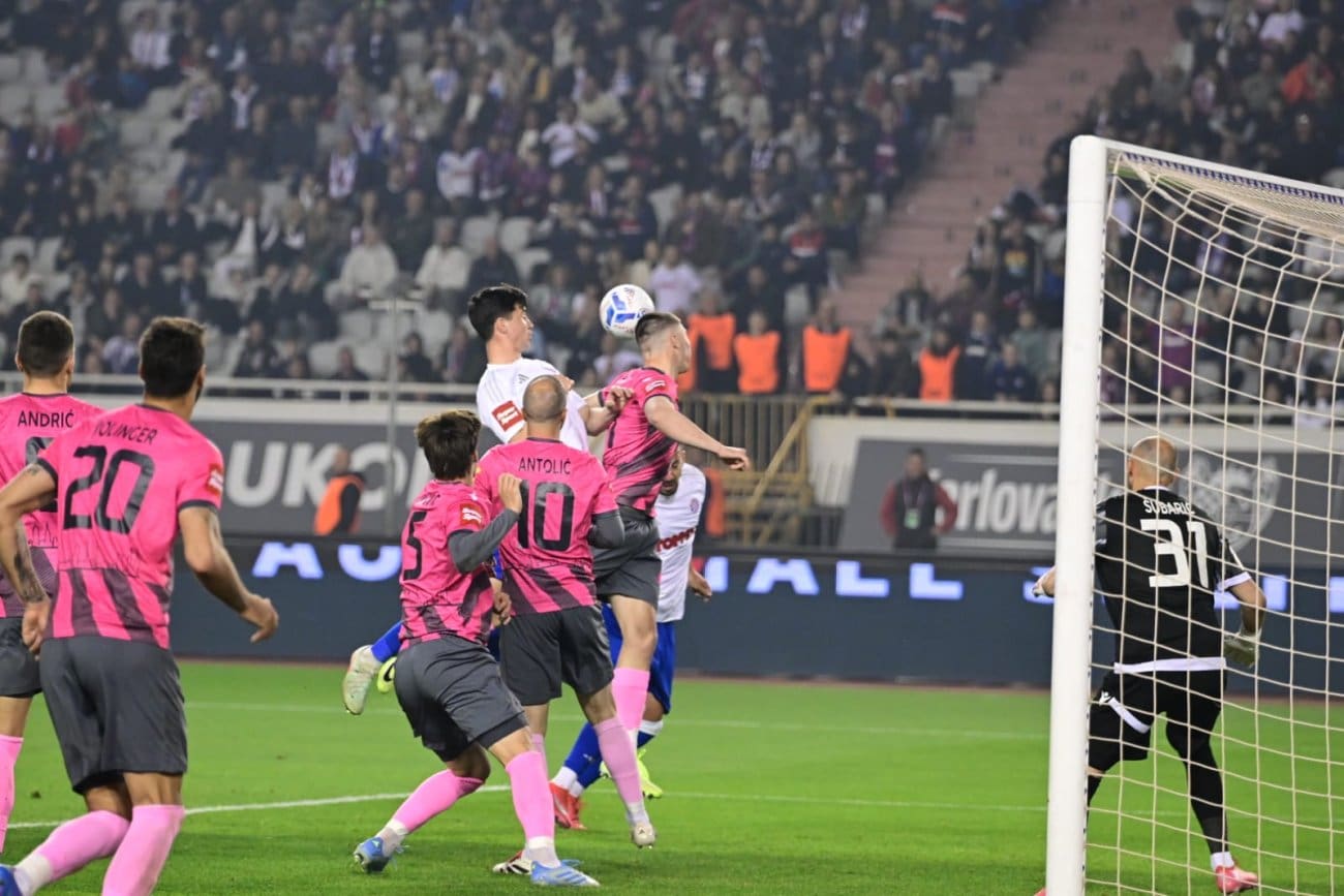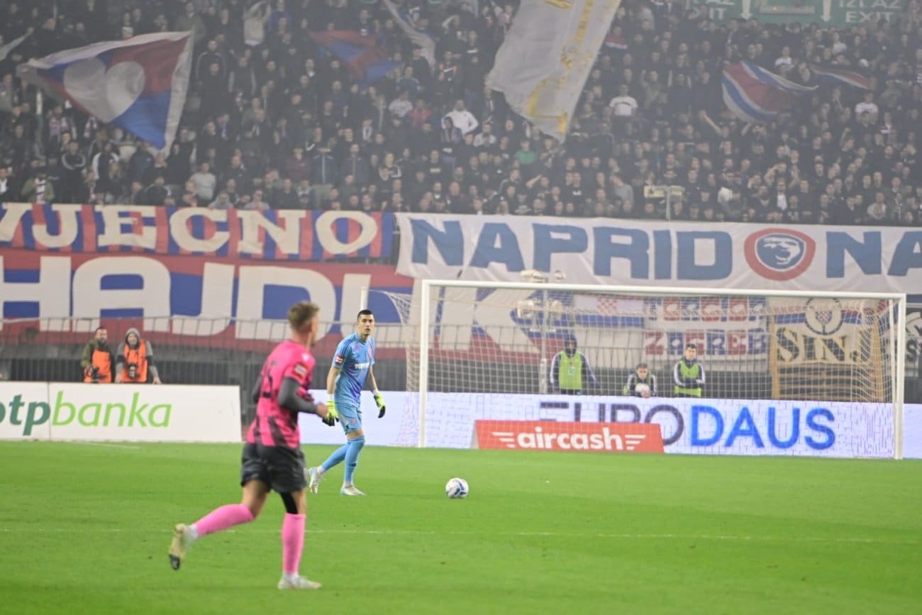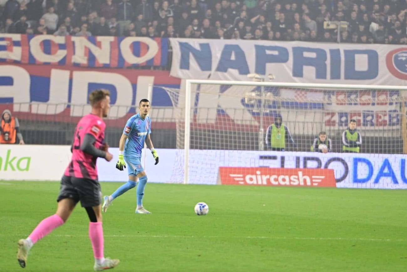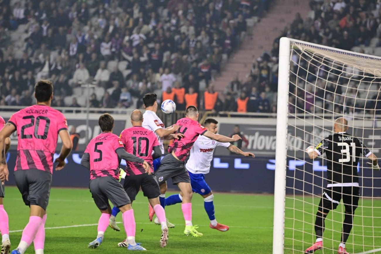 U prvoj minuti četverominutne sudačke nadoknade Lokomotiva je dobila slobodni udarac, a Hajduk nakon izvođenja gol. Pucao je Karačić u gornje lijeve Lučićeve rašlje i zabio za vodstvo Lokomotive i hladan tuš za kraj poluvremena.