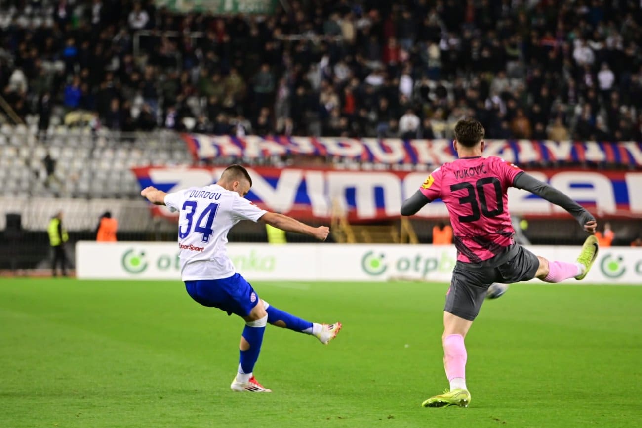 Nogometaši su Hajduka danas s početkom od 18:45 igrali protiv Lokomotive na Poljudu u okviru 29. kola SuperSport HNL. Konac utakmice bio je čupanje živaca, ali srećom je Trajkovski Bijele spasio od poraza. Karačić je zabio za Lokomotivu iz slobodnjaka u 45'+2, no makedonski napadač je Hajduk golom u posljednjoj minuti spasio Hajduk. Utakmicu je obilježio i crveni karton Lučića u 66. minuti koji nehotice igrao rukom prilikom napucavanja Krivka.