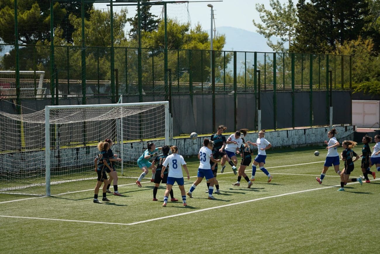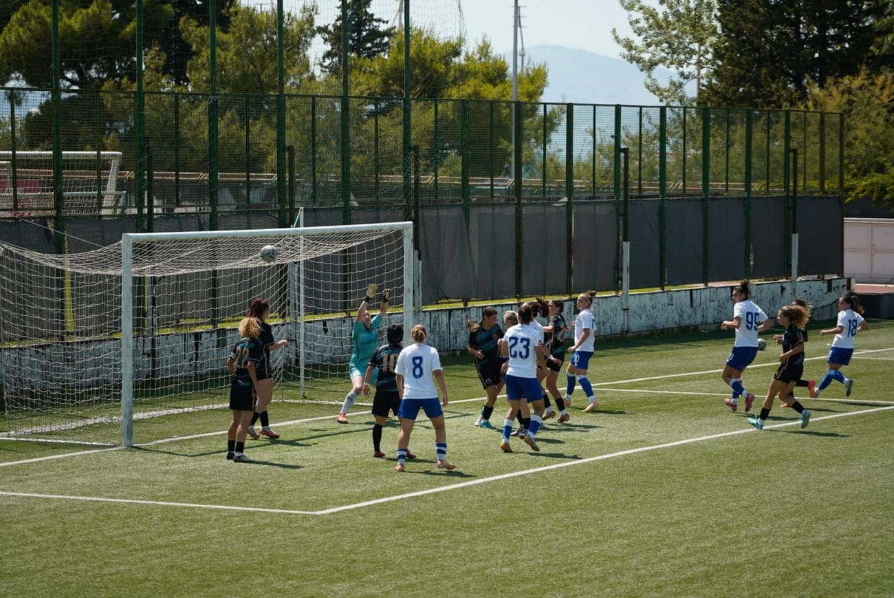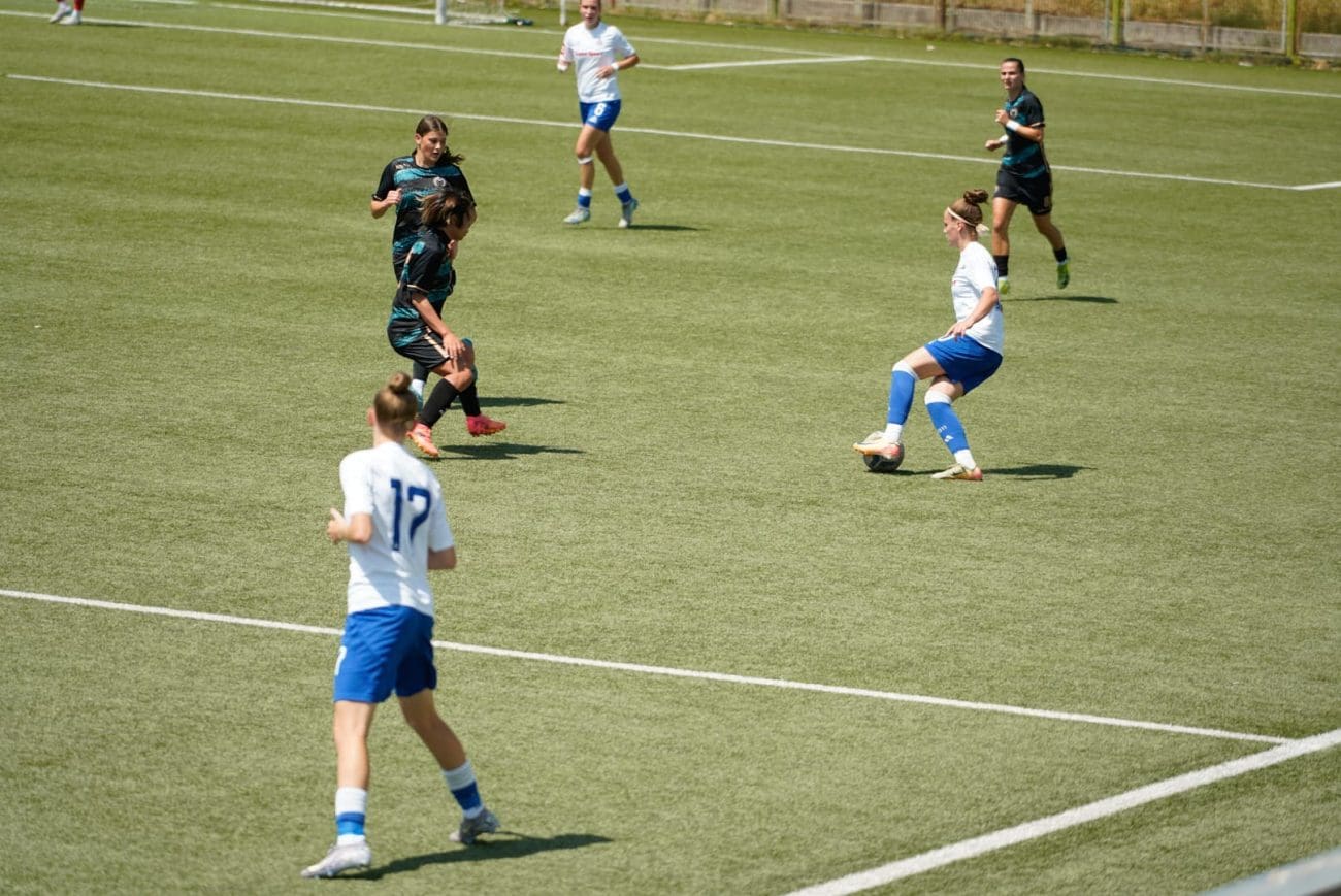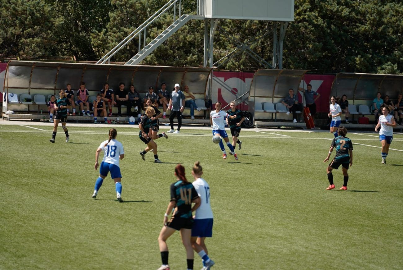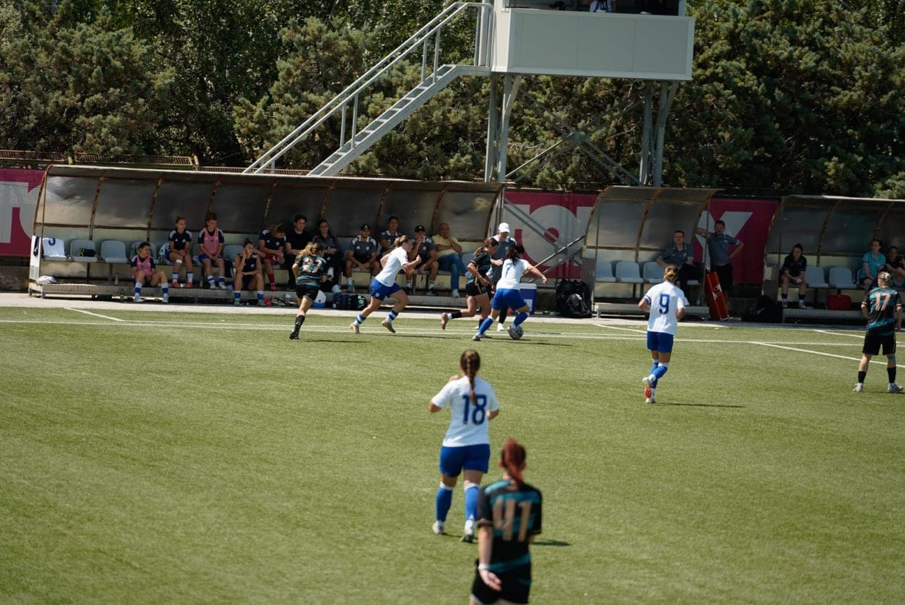 Bijele su povele već u 8. minuti kada je Kukavica nakon ubačaja s desne strane poslala loptu u mrežu za 1:0, a potom je Bagarić povećala vodstvo dvama pogocima. U 28. je minuti pogodila donji lijevi kut gostujućih vrata s 18 metara, a u devet minuta kasnije nakon prolaska kroz sredinu, efektnim se lažnjakom oslobodila svoje čuvarice i pogodila desni kut za 3:0. Posljednji gol poluvremena zabila je Brnić nakon što je Bakalar izvela korner s lijeve strane. Brnić je bila najviša u skoku i sa pet metara glavom je poslala loptu u mrežu za 4:0 na poluvremenu.