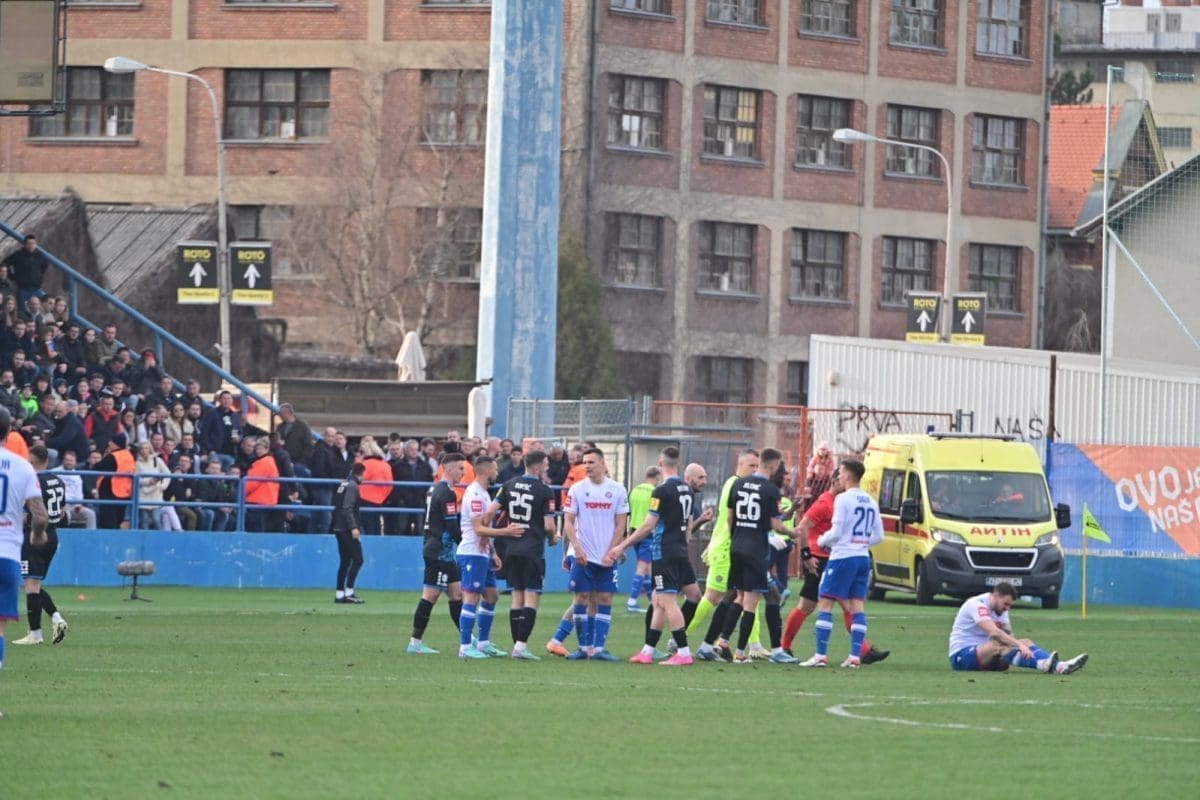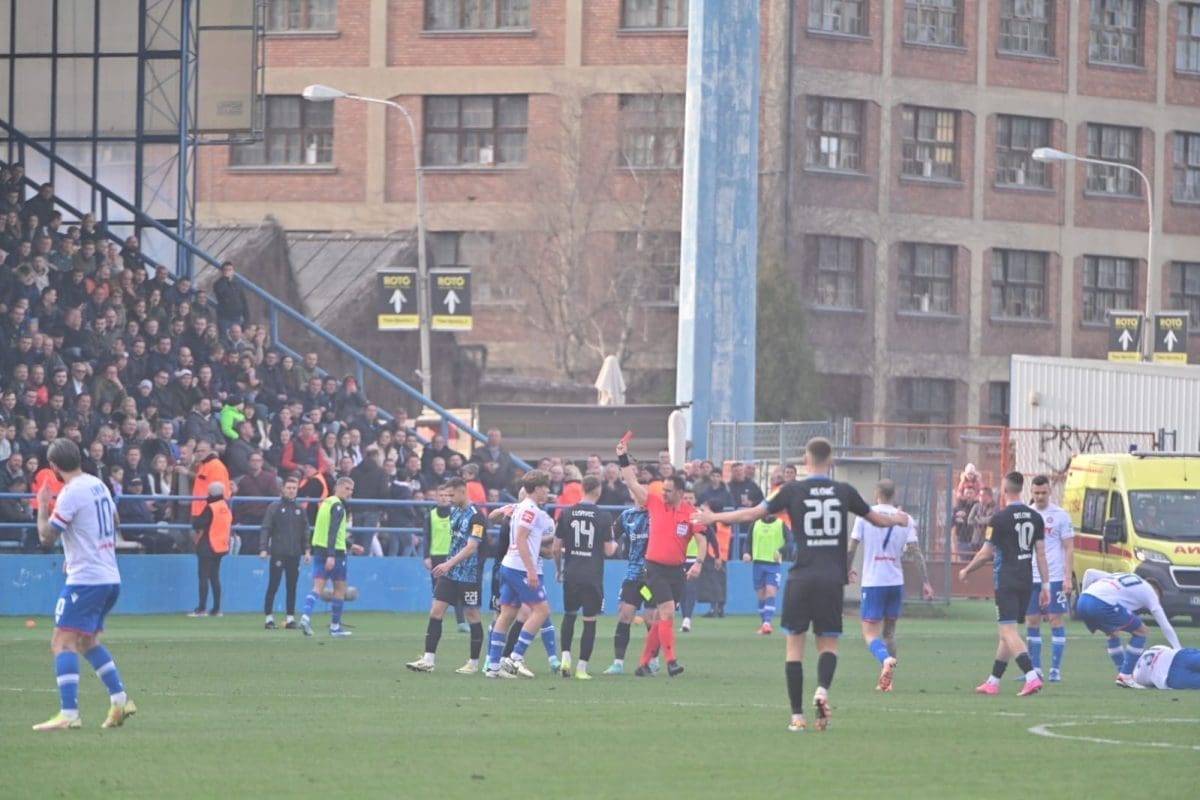 Na samom početku poluvremena igrač Varaždina Dabro je dobio drugi žuti karton. Hajduk napada i pokušava zabiti pogodak.