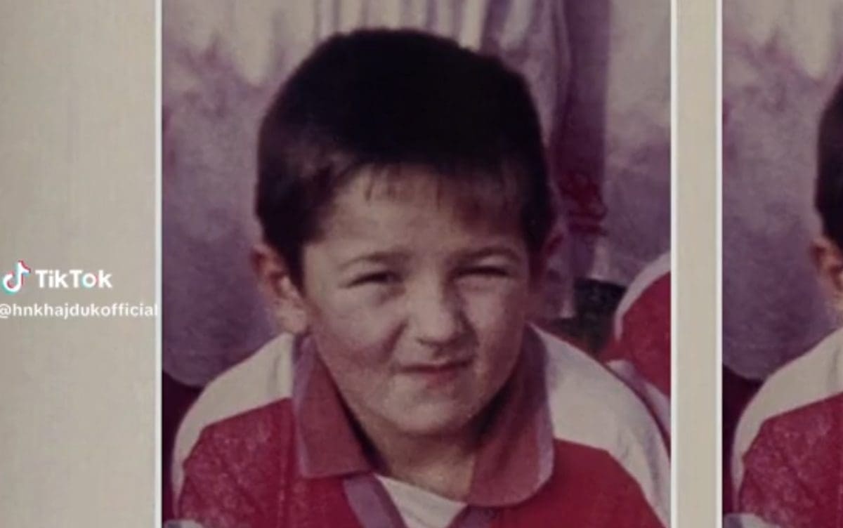 U videu se vidi Markova fotografija iz djetinjstva s naslovom "Kada odrastem, želim igrati za Hajduka".