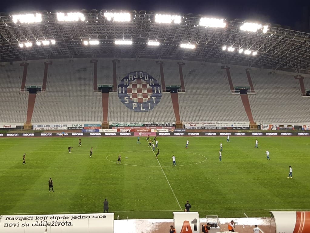 Bijeli na Poljudu u sklopu 11. kola HT Prve lige dočekuju Osijek. Gosti su u prošlom kolu slavili protiv Slaven Belupa, a Hajduk je izgubio od Istre i smjestio se na slabo šesto mjesto. Osijek je zasad prvi pratitelj Dinama, sa četiri boda zaostatka. Nakon dolaska novog predsjednika Lukše Jakobušića, dogodila se promjena i na klupi Bijelih pa će ih u ovome susretu voditi iskusni Boro Primorac. U domaćem sastavu nije bilo većih promjena osim izostanka Caktaša i Diamantakosa.