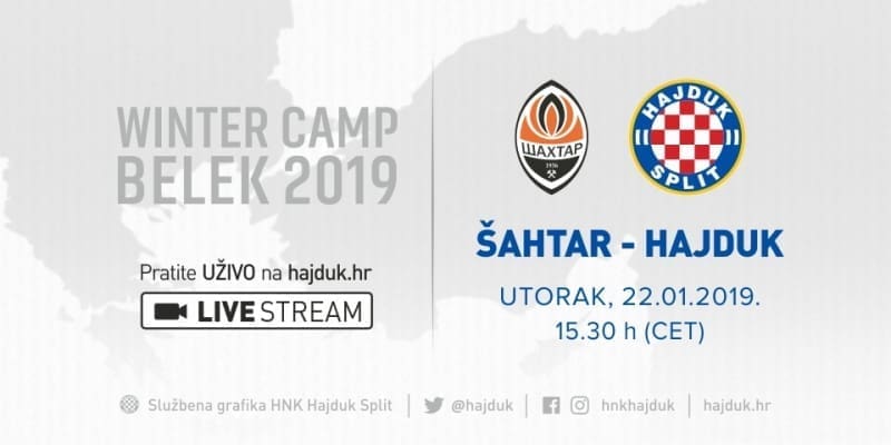 Treći sparing-partner Bijelima na pripremama u Turskoj bit će Šahtar iz Donjecka. Aktualni ukrajinski prvak, aktualni osvajač Kupa Ukrajine, trenutačno vodeća momčad Ukrajine... Nekadašnji klub Stipe Pletikose i Darija Srne. Najjači test za igrače trenera Siniše Oreščanina. Igrat će se u Beleku u utorak (22. veljače) s početkom u 15:30 sati po hrvatskom vremenu (17:30 po lokalnom). Livestream je kao i do sada na www.hajduk.hr .