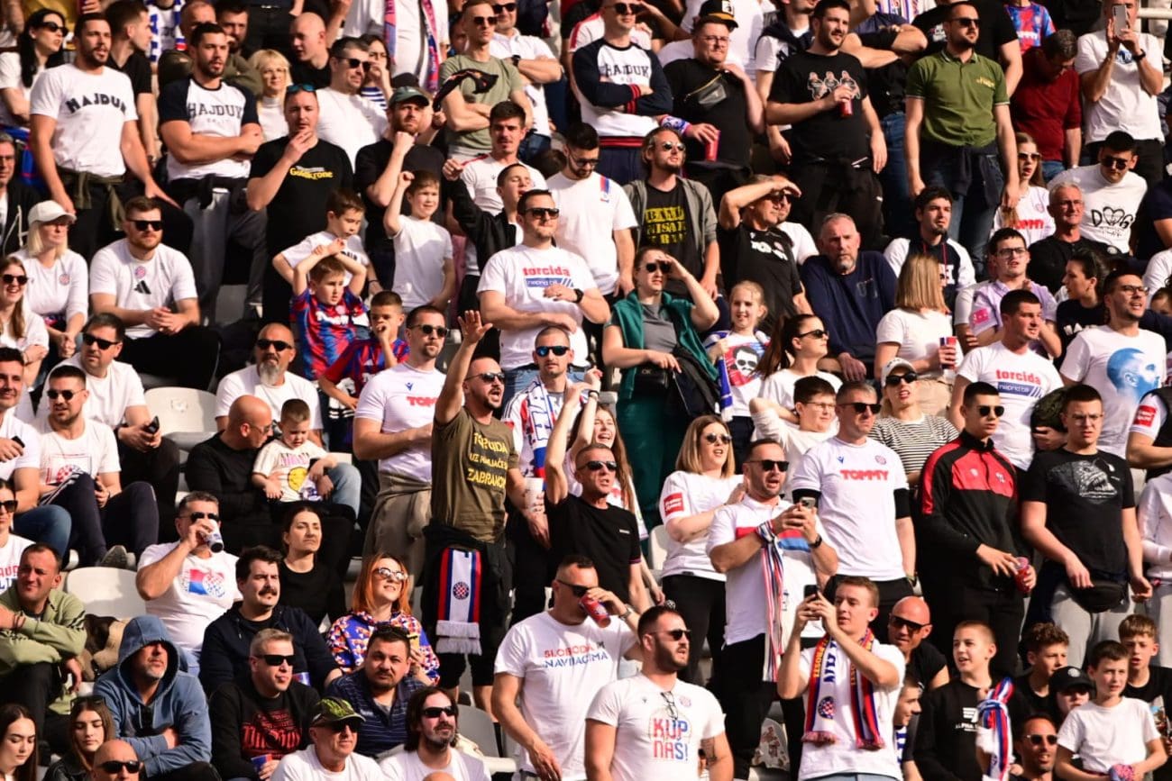 Torcida je potom zapalila dvije bengalke i jedan topovski udar, a navijanje iz utrobe Poljuda poraslo je za nekoliko decibela. Potom su zapjevali "Koliko volim ja tvoje pobjede".