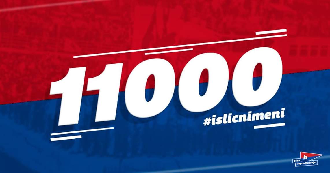HNK Hajduk Split je danas postigao brojku od 11.000 članova u aktualnoj godini, objavio je Naš Hajduk.