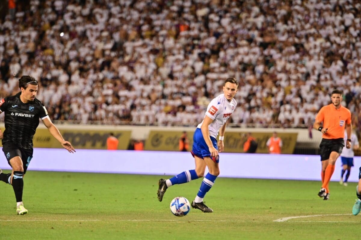 Nogometaši Hajduka igraju protiv Rijeke na rasprodanom Poljudu utakmicu 2. kola SuperSport HNL. Susret je započeo u 21 sati na prepunom Poljudu gdje se očekuje preko 30 tisuća navijača.