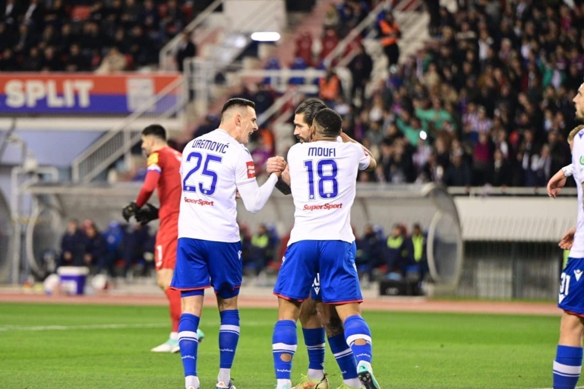 72' – Hajduk vrši dvostruku izmjenu, iz igre su izišli Krovinović i Moufi, a zamijenili su ih Odjidja Ofoe i Mikanović.