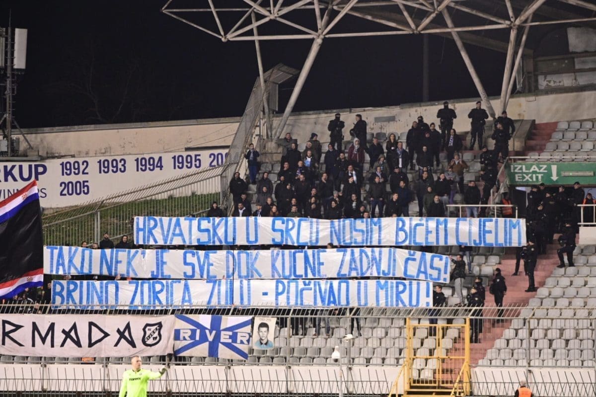 20' - Torcida je istaknula transparent posvećen preminulom generalu Brunu Zorici: