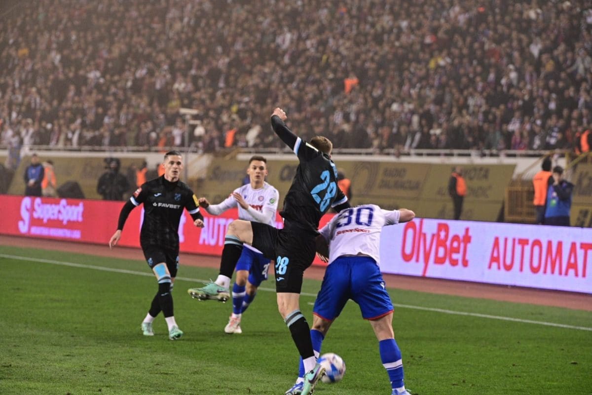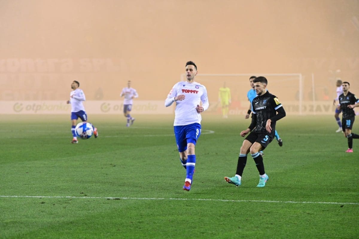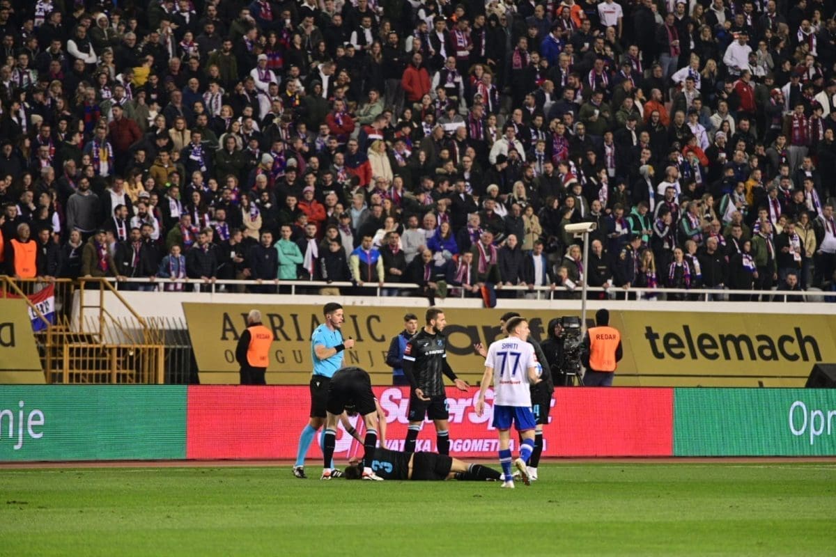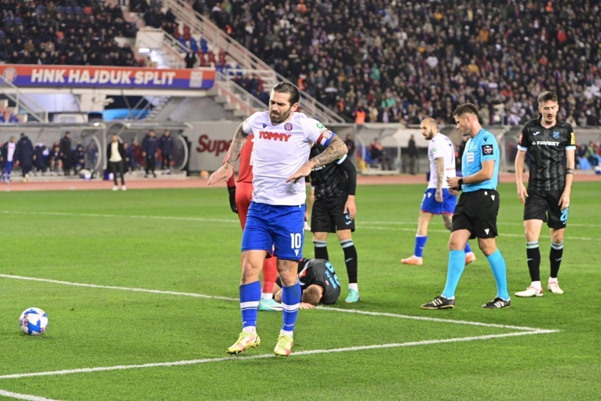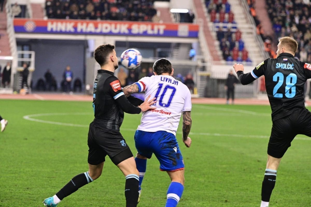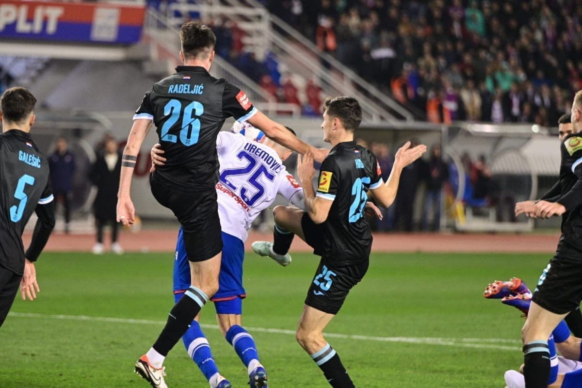31' – Na travnjaku su ostali ležati Livaja i Radeljić koji je pokupio Hajdukova napadača i zaradio žuti karton.