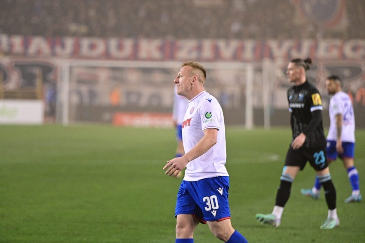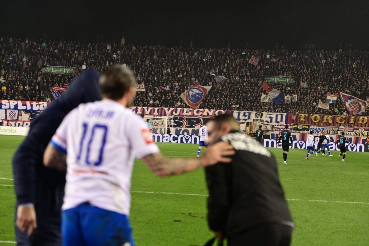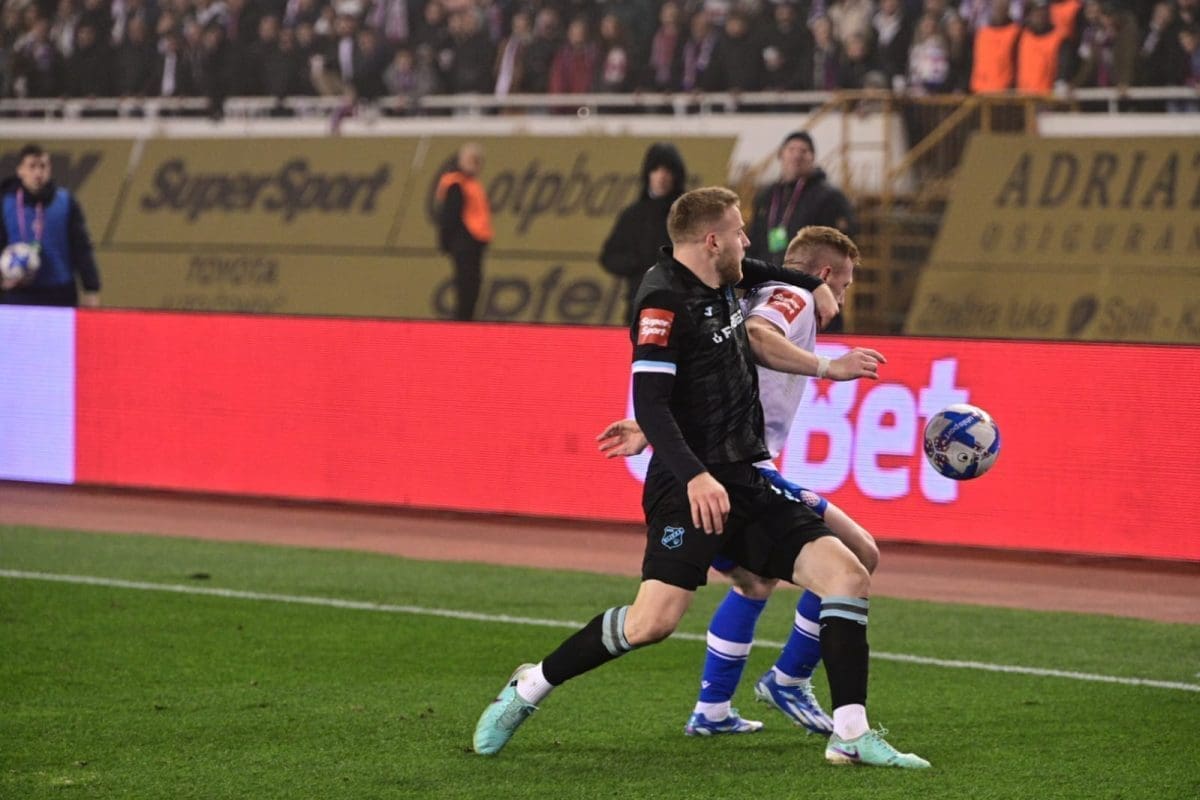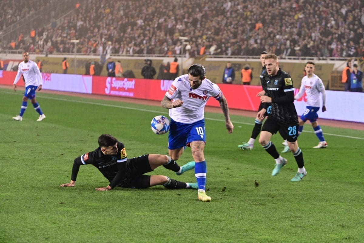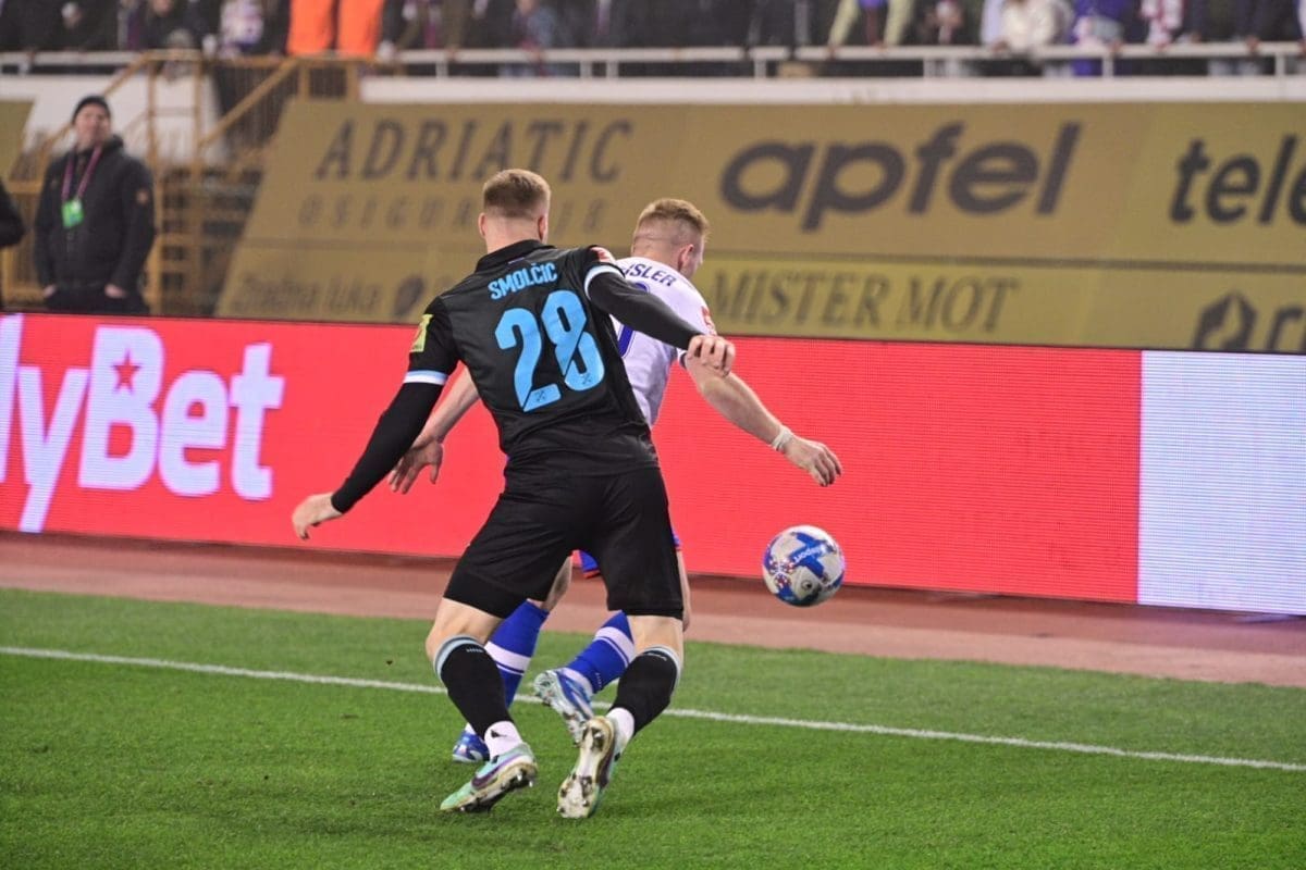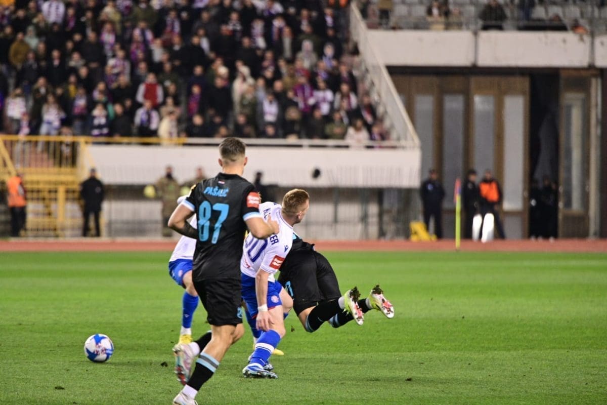 31' – Na travnjaku su ostali ležati Livaja i Radeljić koji je pokupio Hajdukova napadača i zaradio žuti karton.
