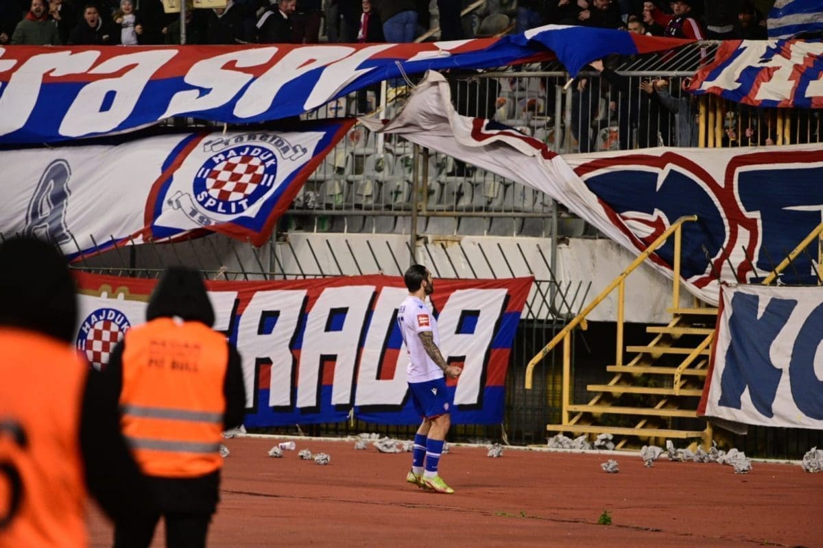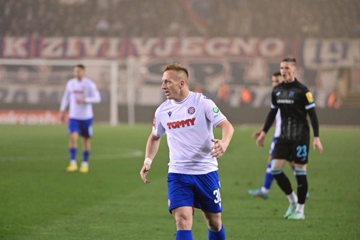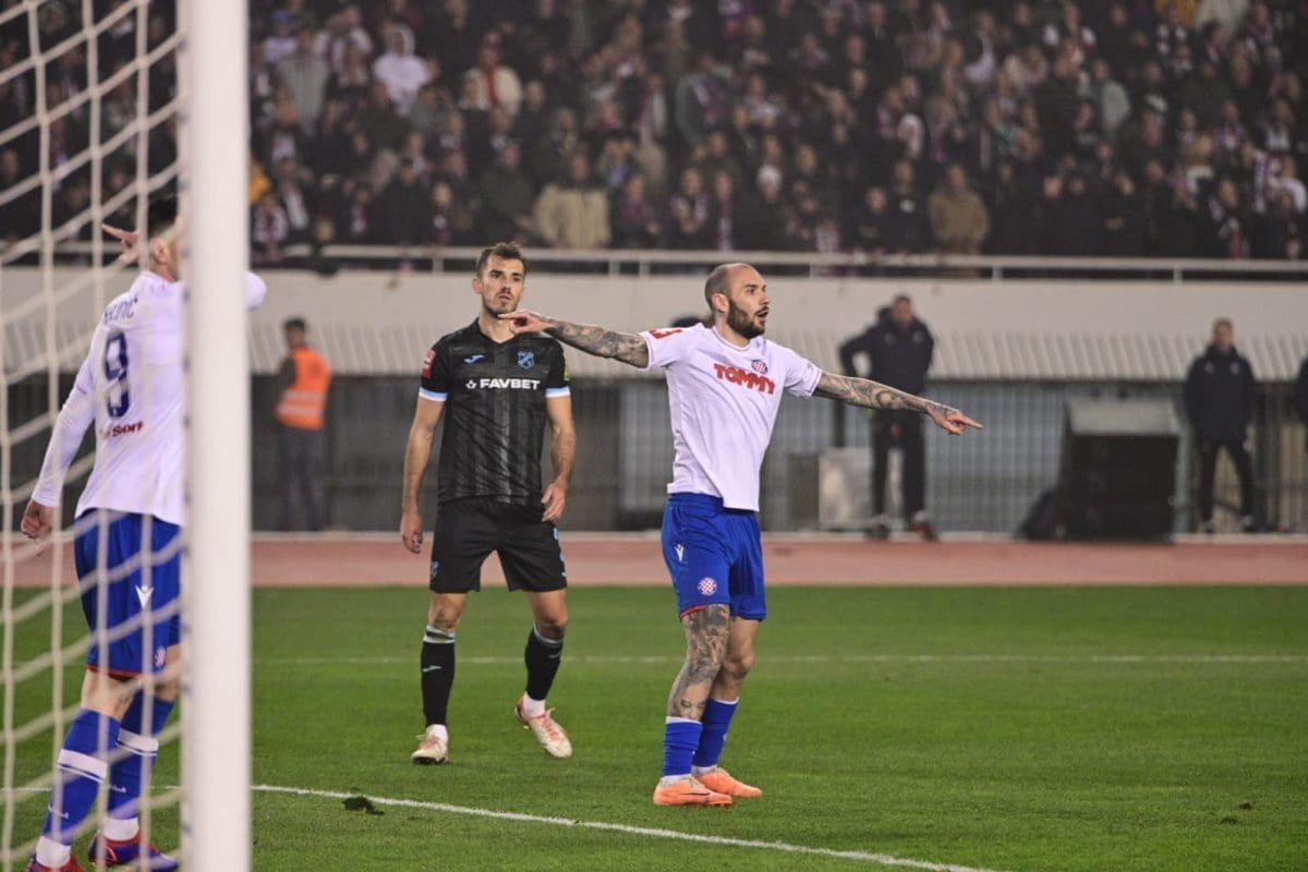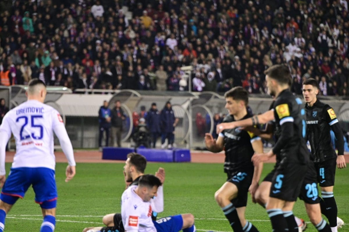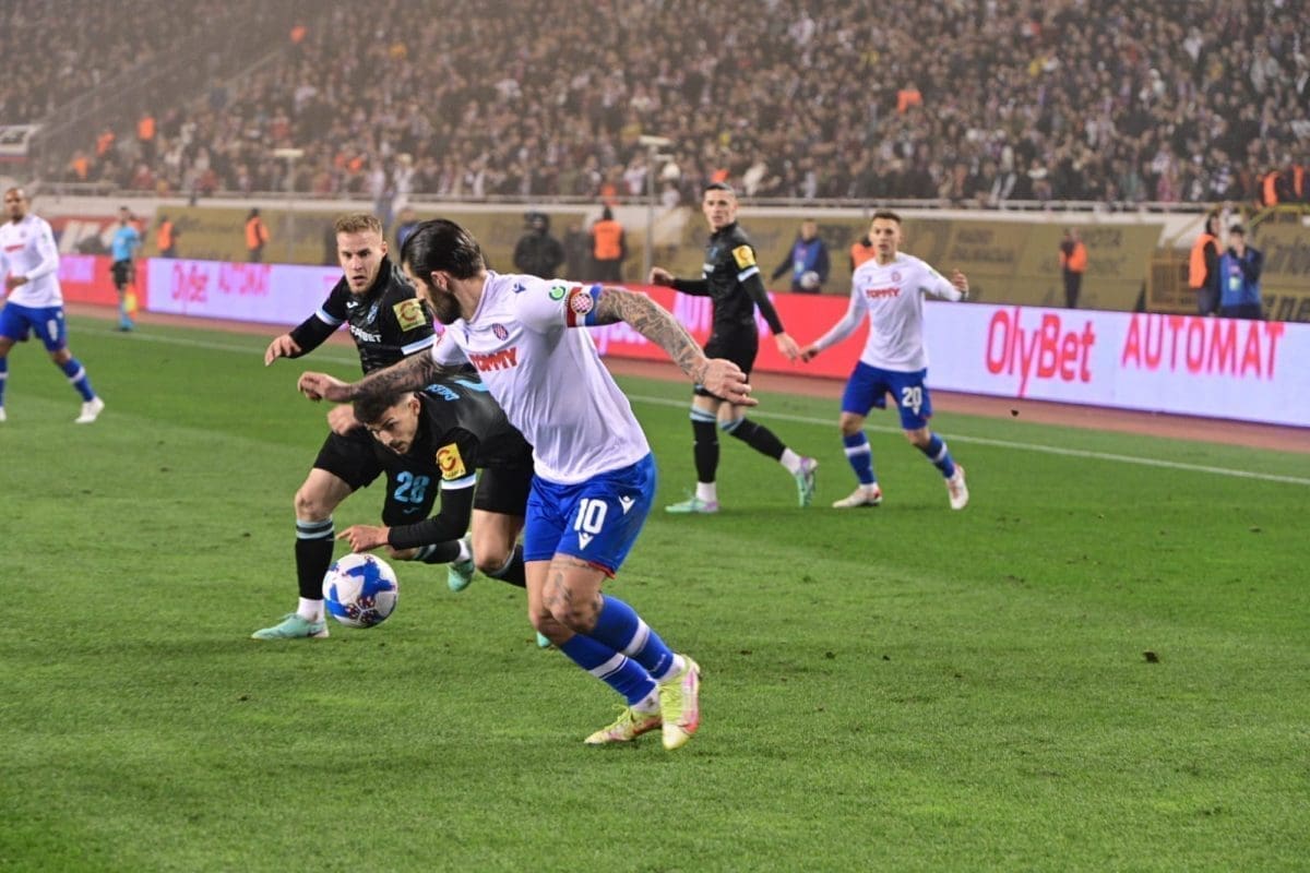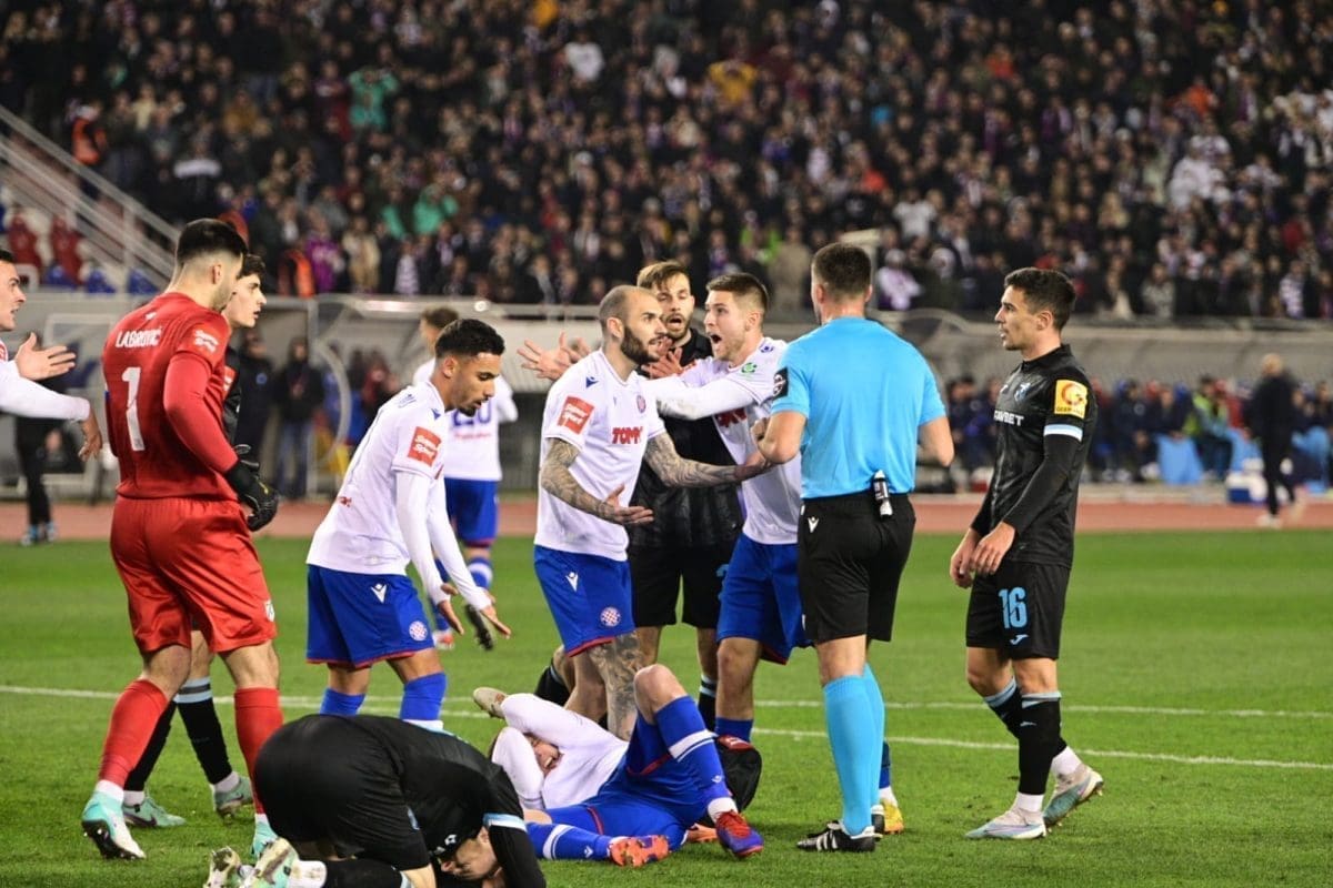 31' – Na travnjaku su ostali ležati Livaja i Radeljić koji je pokupio Hajdukova napadača i zaradio žuti karton.