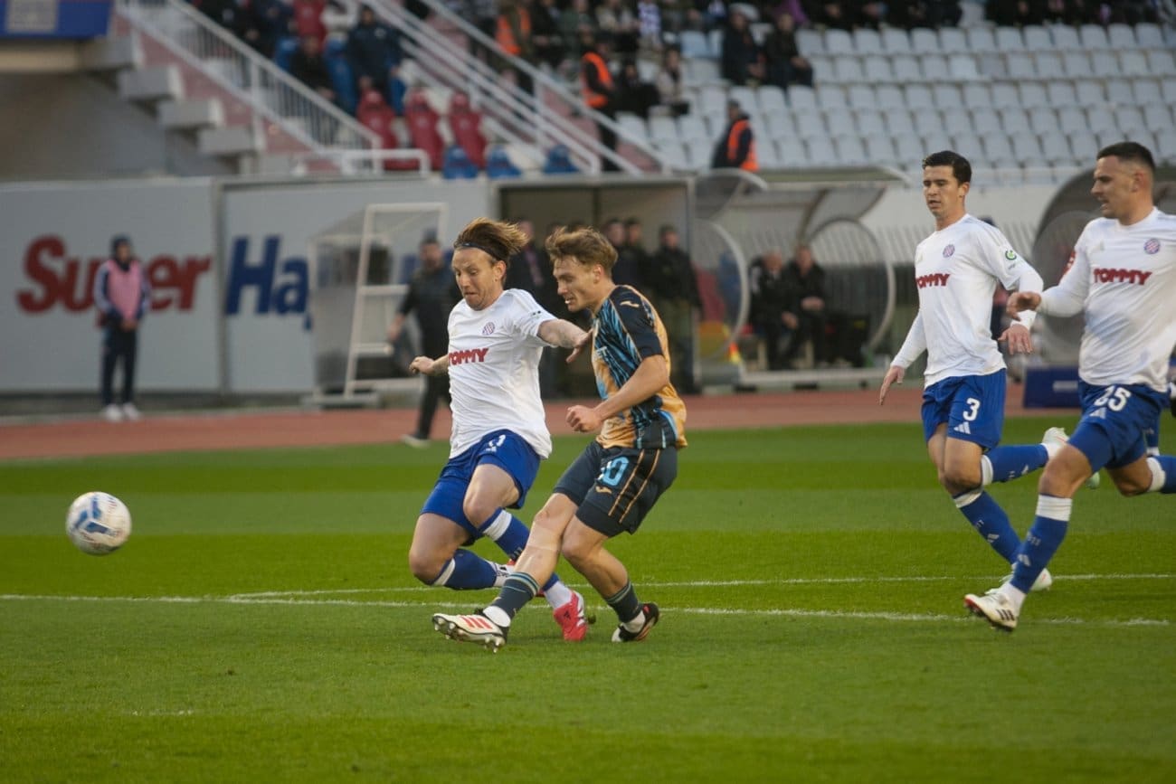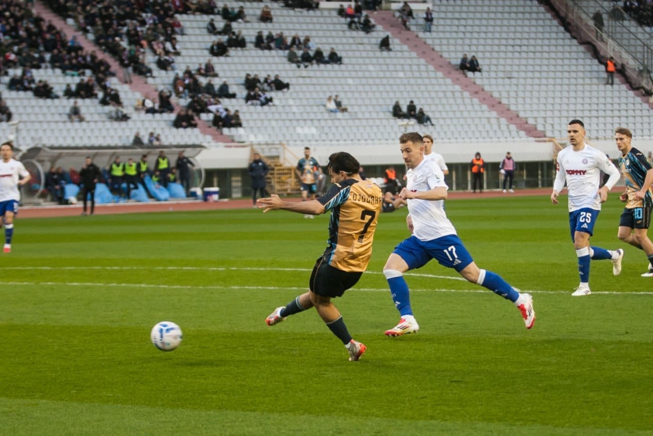 12' - Zaprijetio je Hajduk, Kalik je na desnoj strani vidio Sigura koji je pucao iskosa i pokušao ubaciti, ali odbio je Bogojević.