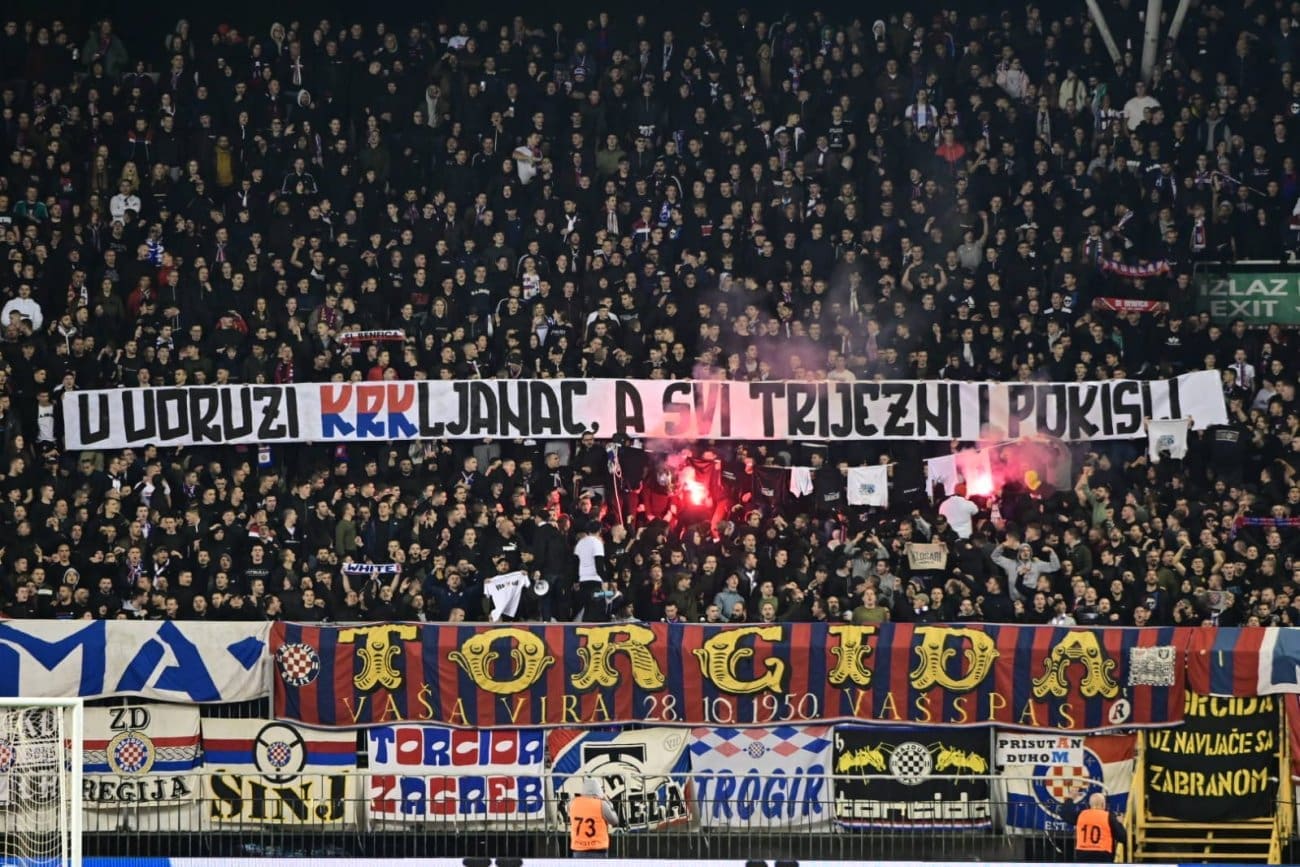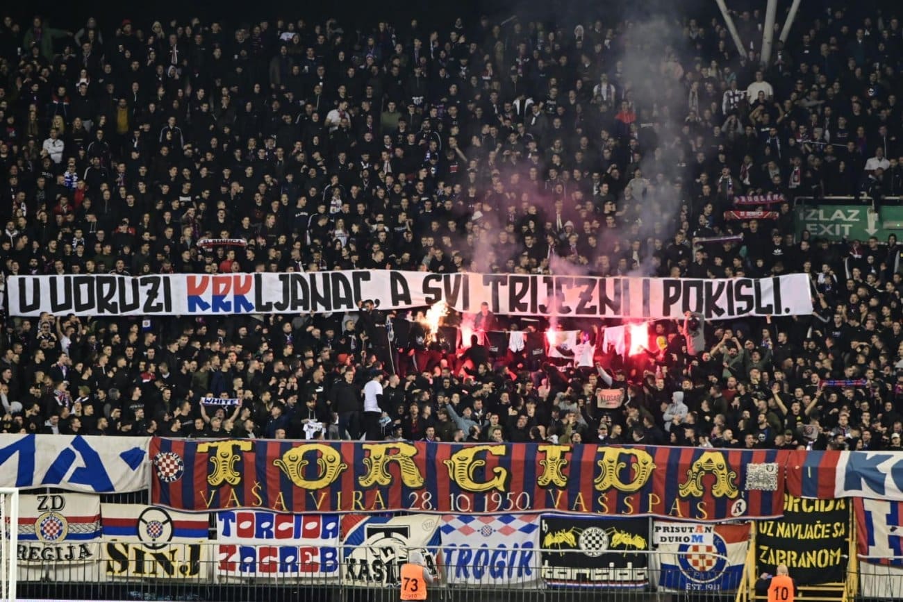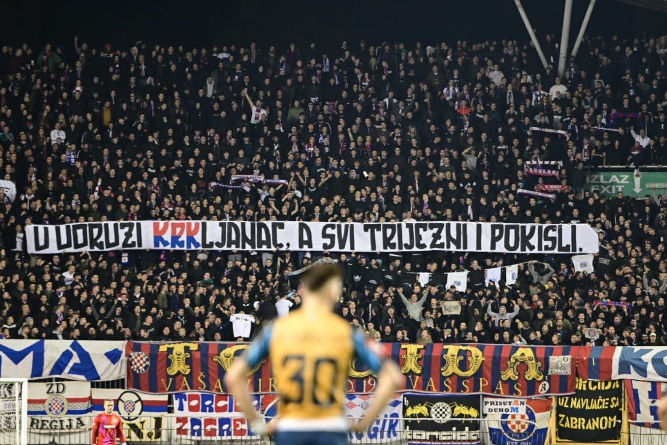 60' - Torcida je istaknula poruku "U UDRUZI KRKLJANAC, A SVI TRIJEZNI POKISLI."