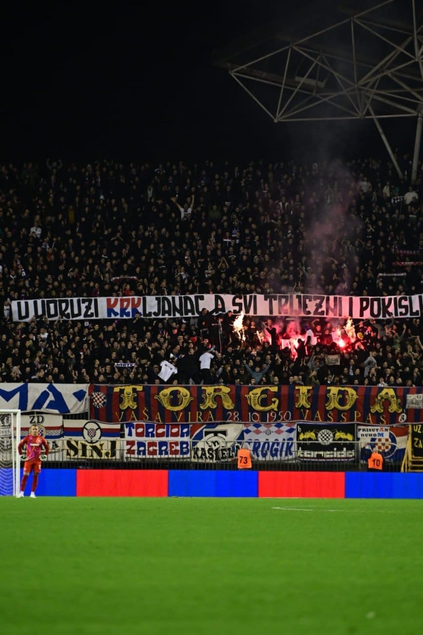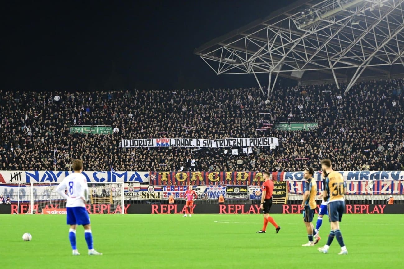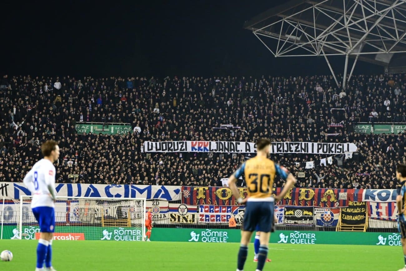 60' - Torcida je istaknula poruku "U UDRUZI KRKLJANAC, A SVI TRIJEZNI POKISLI."