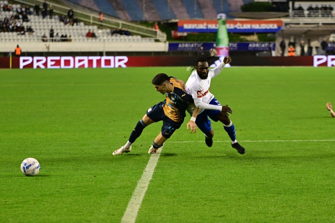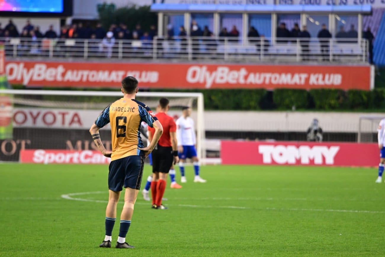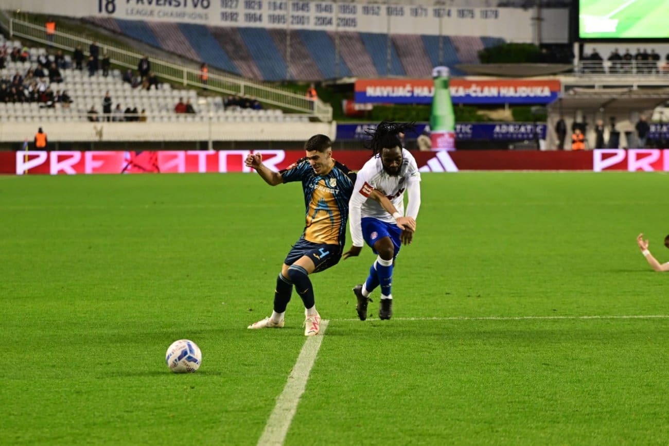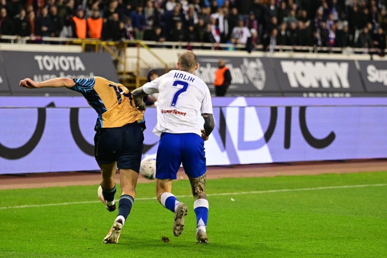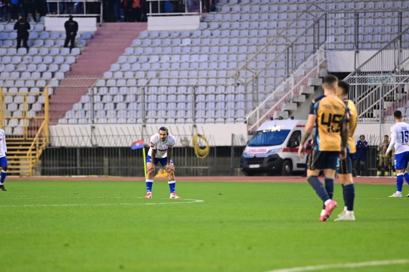 78' - Bogojević je ostao ležati pa sjediti na travnjaku nakon kornera koji Hajduk nije dobio zbog navodnog prekršaja Rusyna, a Bogojeviću se pomoć ukazivala nakratko izvan granica terena.