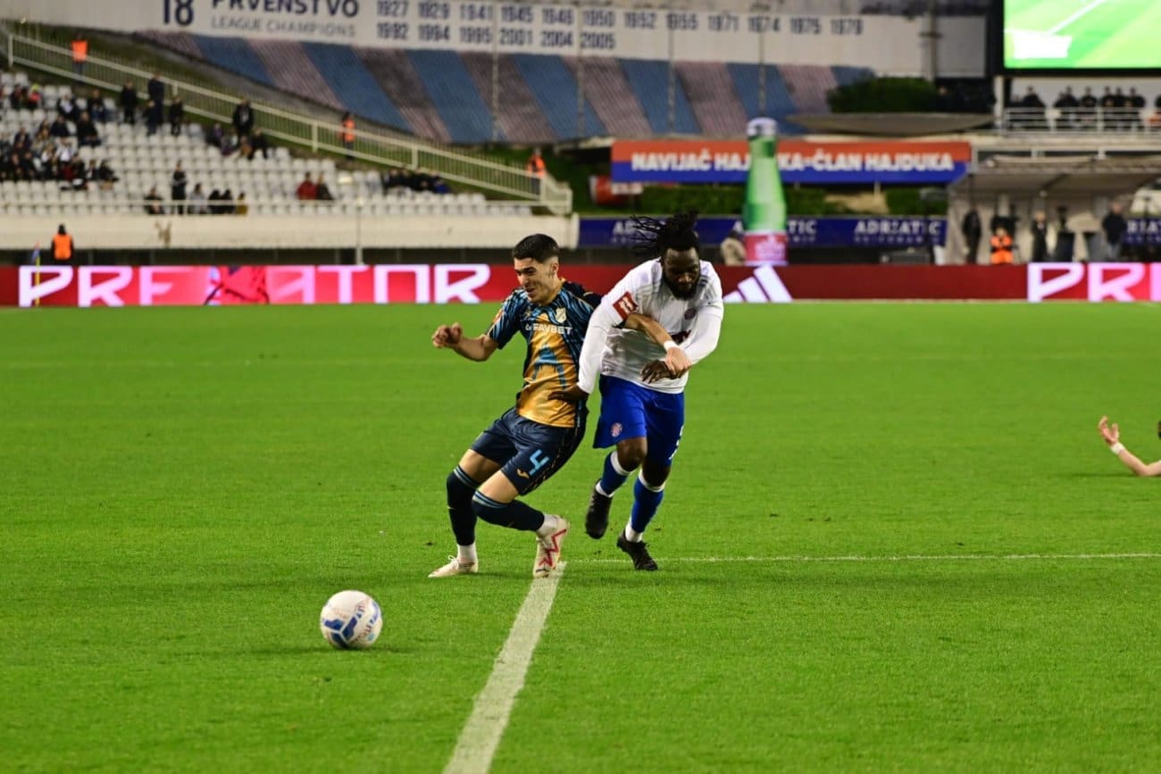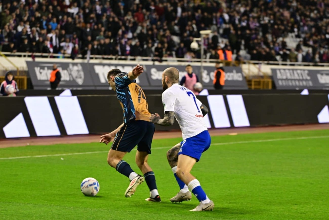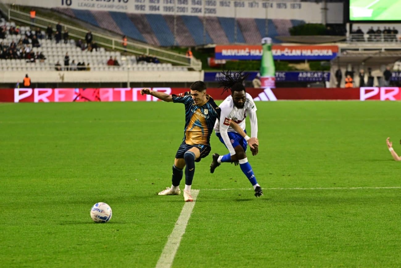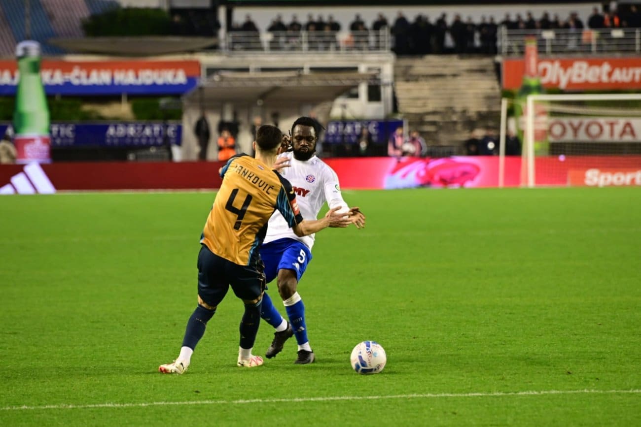 78' - Bogojević je ostao ležati pa sjediti na travnjaku nakon kornera koji Hajduk nije dobio zbog navodnog prekršaja Rusyna, a Bogojeviću se pomoć ukazivala nakratko izvan granica terena.