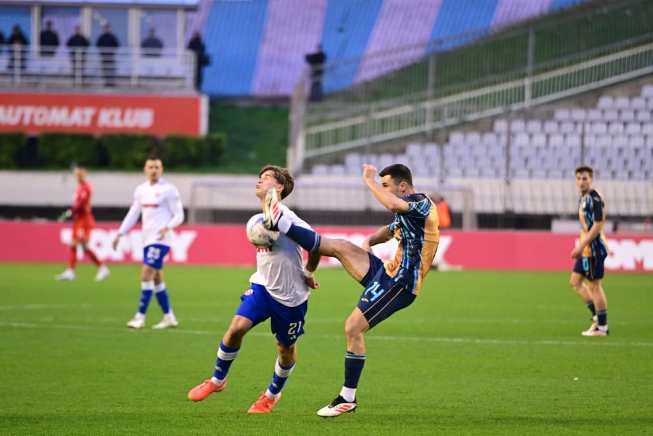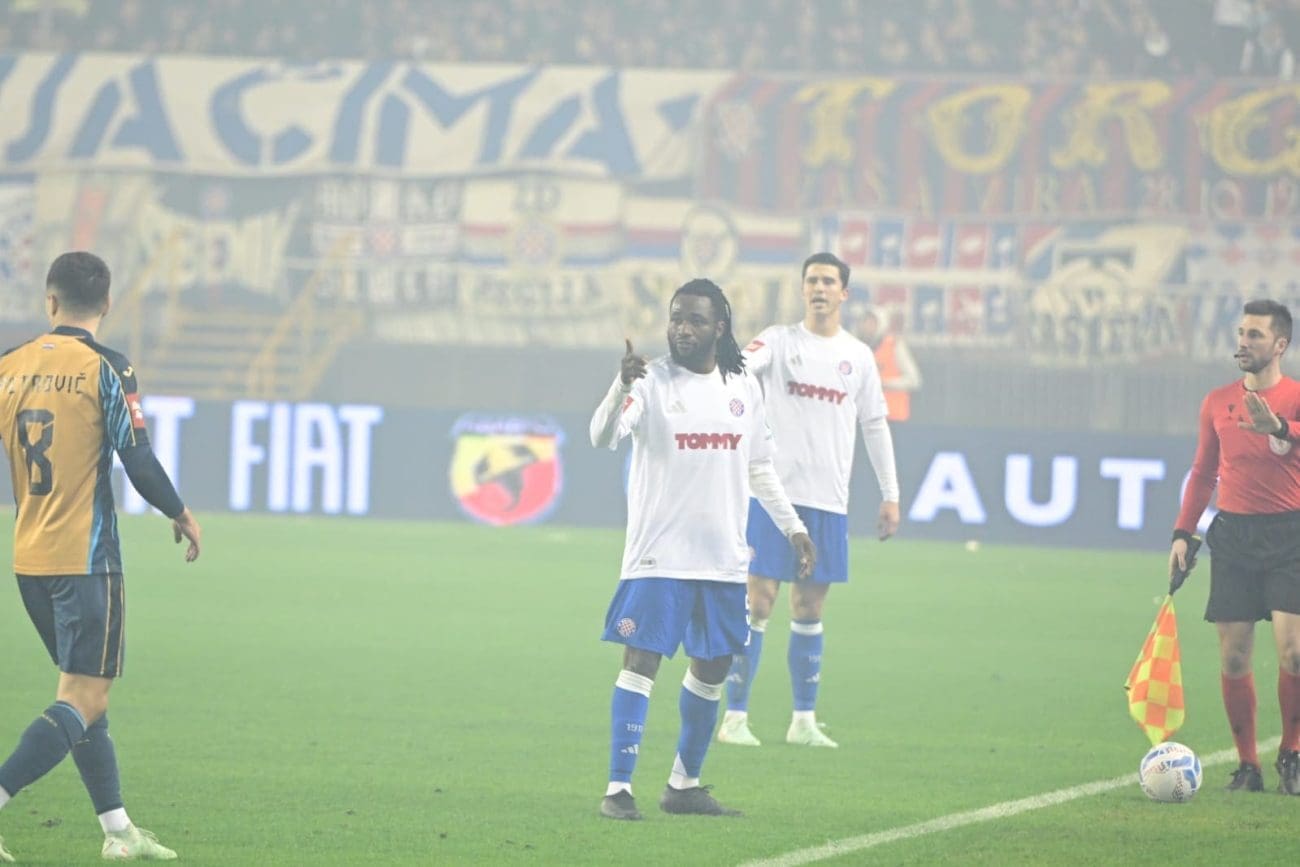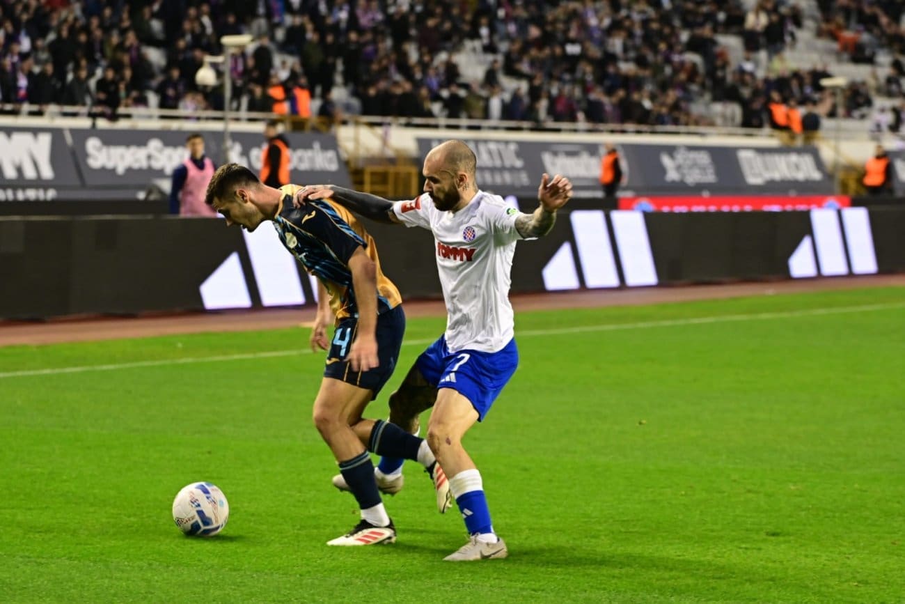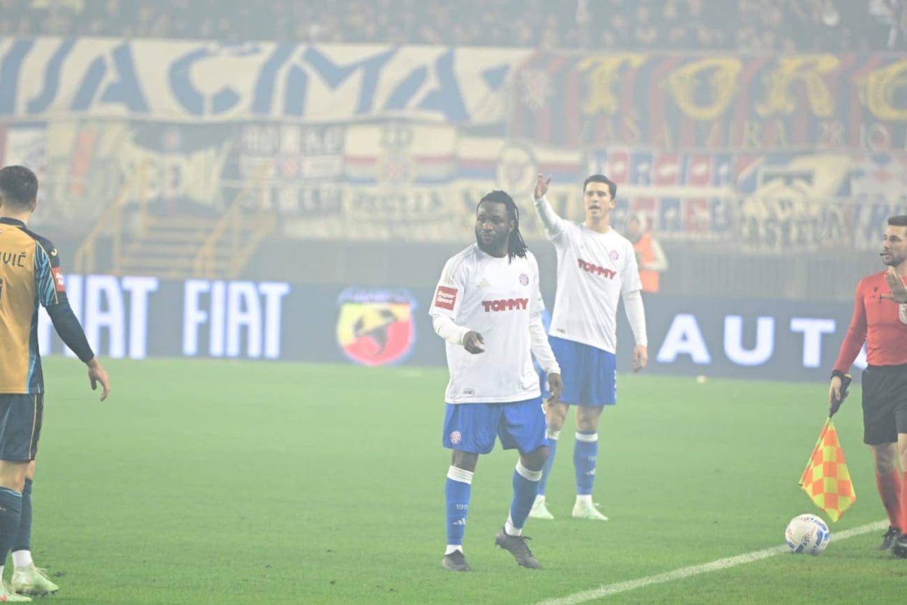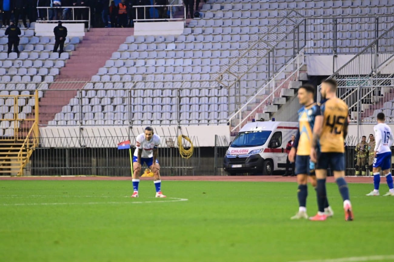 78' - Bogojević je ostao ležati pa sjediti na travnjaku nakon kornera koji Hajduk nije dobio zbog navodnog prekršaja Rusyna, a Bogojeviću se pomoć ukazivala nakratko izvan granica terena.