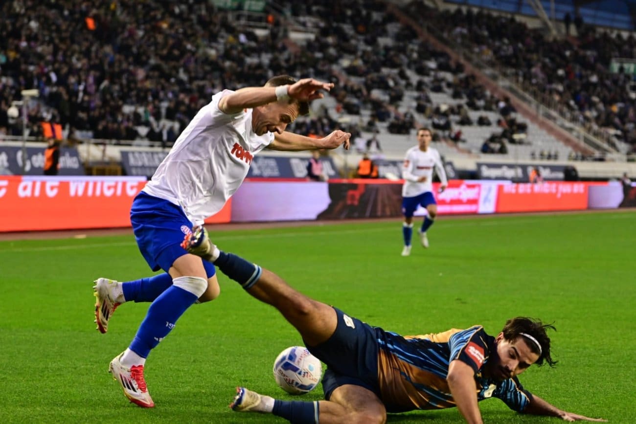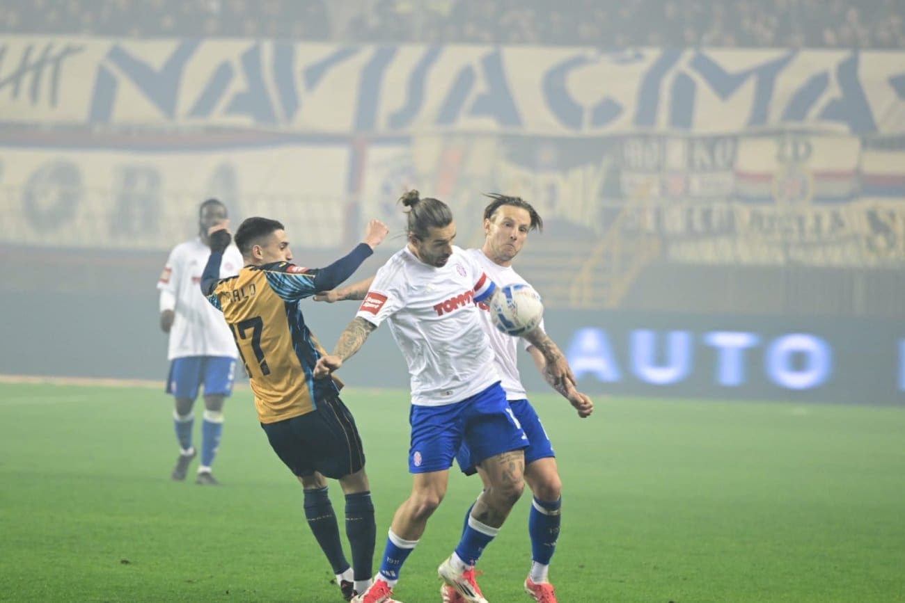 Nogometaši Hajduka danas s početkom od 17:00 sati igrali su četvrtfinale Kupa protiv Rijeke na Poljudu. Susret je ovo dvije vodeće momčadi na prvenstvenoj tablici, prvoplasirane Rijeke koja ima bod više od drugoplasiranog Hajduka.
