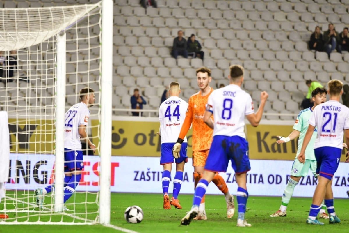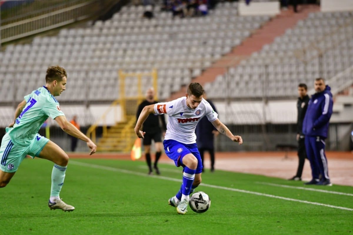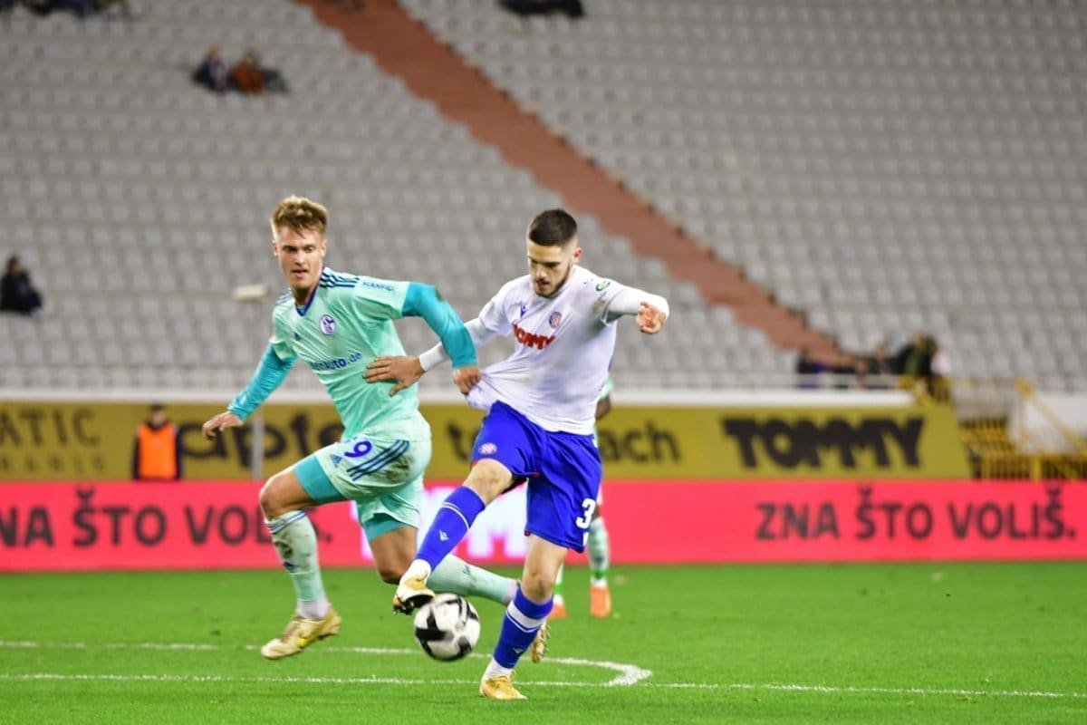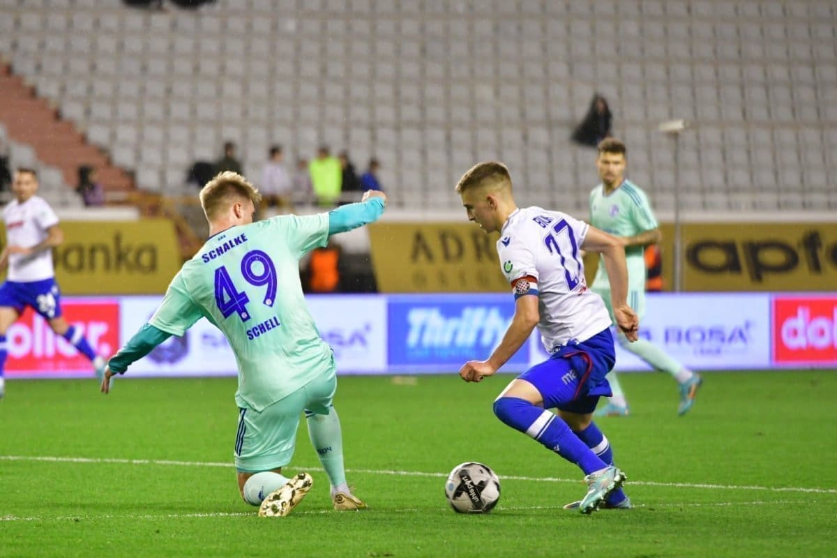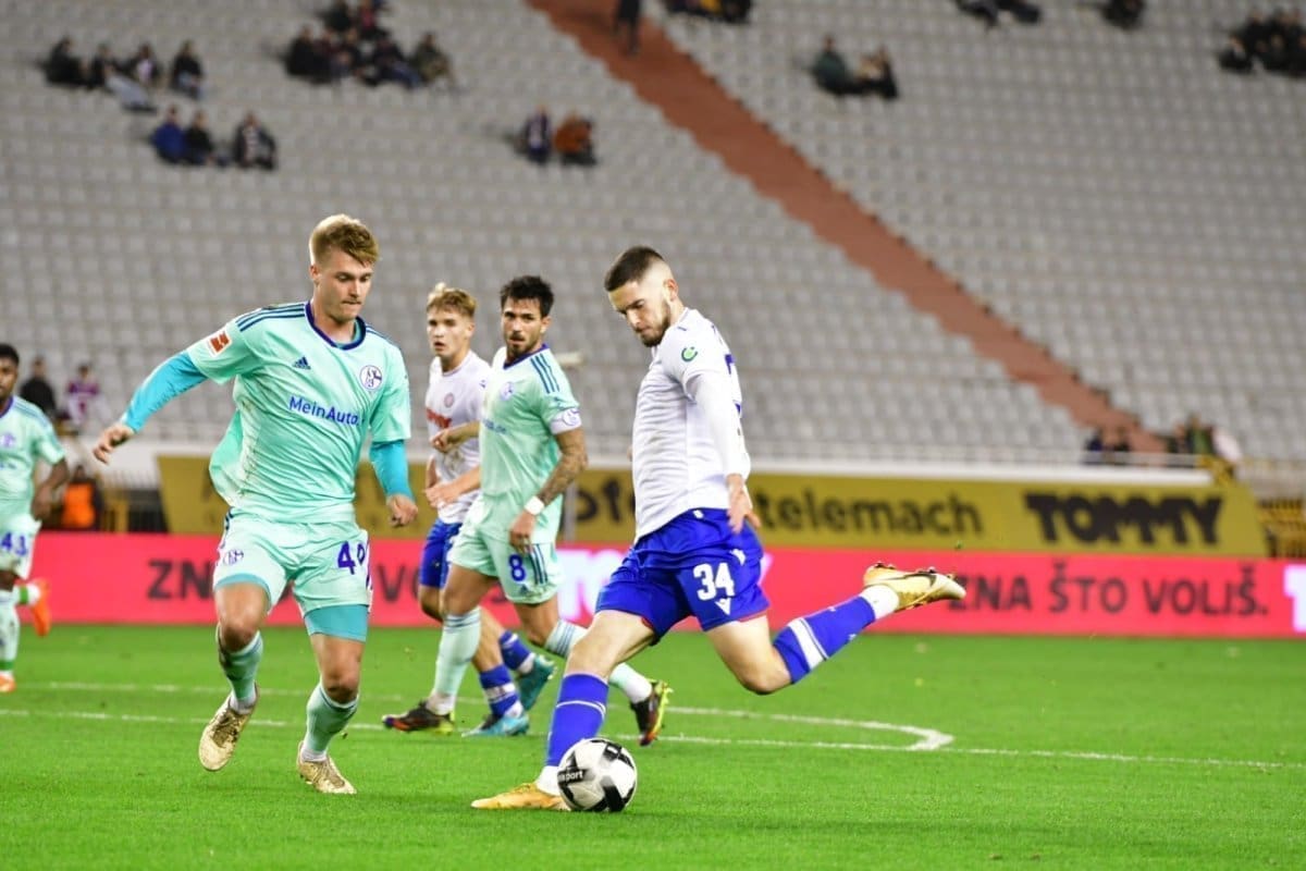 U 61. minuti sjajna Hajdukova akcija za 3:2: Pukštas je odlično asistirao, a Biuk mirno poentirao izbliza. Minutu kasnije Biuk je pokušao nakon odlična driblinga, ali udarac je išao direktno u vratara. Biuk je potom napustio igru, a zamijenio ga je petnaestogodišnji Luka Vušković – i nedugo nakon toga zabio! U 71. minuti nakon Sahitijeva slobodna udarca najbolje se snašao u gužvi i postavio 4:2. Međutim, i Schalke je odmah uzvratio. U 73. minuti Andreas Ivan je ubacio s desne strane, a Kozuki neometano s nekoliko metara zabio za 4:3.