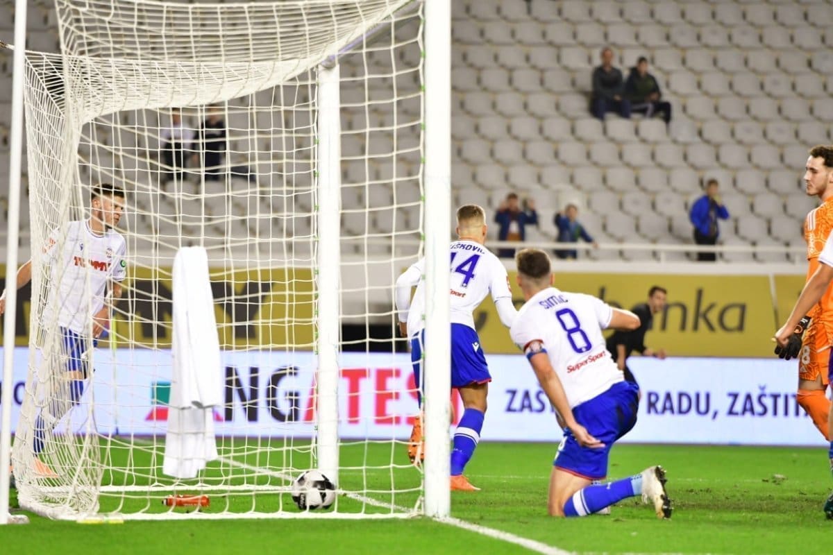 U 24. minuti Bijeli su poveli 1:0. Sahiti je ubacio s desne strane nakon Prpićeva dobivena duela, a Ćubelić se najbolje postavio pred golom i doveo Hajduk u vodstvo.