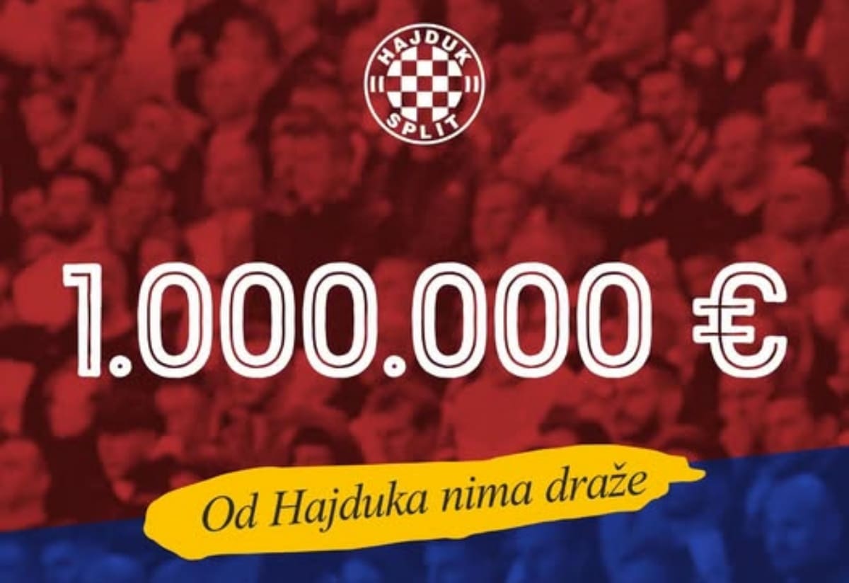 Siječanj nove godine već je donio preko 60 tisuća članova i novih milijun eura u klupskoj blagajni. MILIJUN hvala na beskonačnoj ljubavi", objavio je Hajduk.