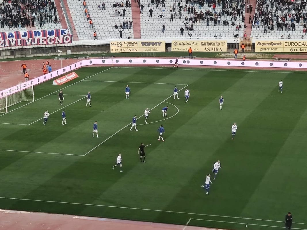 45. minuta - Hajduk nakon prvom poluvremena vodi 2:0 protiv Lokomotive. Strijelci su bili Kalinić i Krovinović.