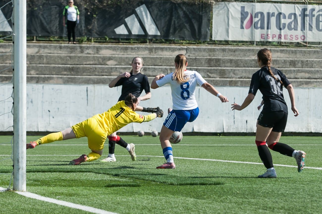 Treći pogodak ponovno je stigao nakon ubačaja s lijeve strane, a Prkačin je ovaj put bila precizna glavom za 3:0. Do kraja prvog dijela mrežu je zatresla i Janja Čanjevac snažnim udarcem s 12 metara za visokih 4:0.