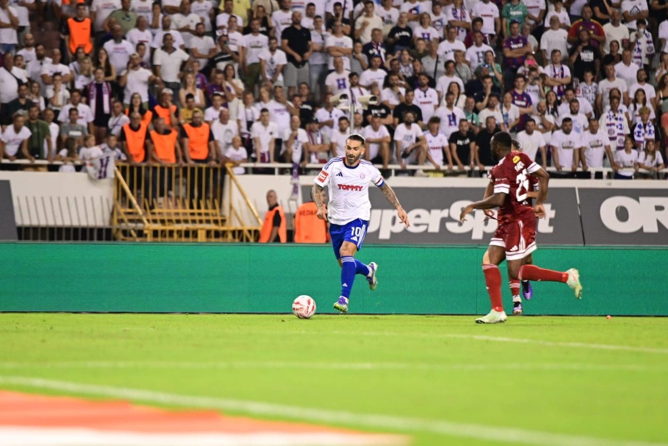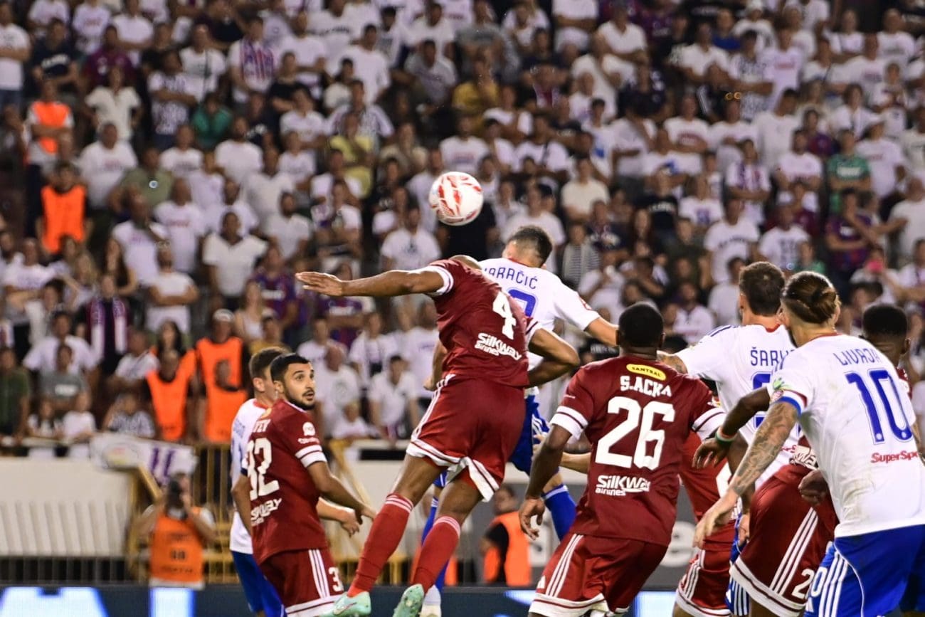 Hajduk je danas s početkom od 21 sat na Poljudu igrao protiv azerbejdžanske Zire uzvratnu utakmicu 2. kola kvalifikacija za Konferencijsku ligu. Rezultat je današnje utakmice išao u korist Splićana do 93. minute, a nakon isteka regularnog dijela uslijedili su produžeci. Krovinović je u 18. minuti susreta zatresao mrežu na asistenciju Livaje, a hladan se tuš za Bijele dogodio u 93. minuti kada je uslijedio gol gostiju, Djibrila je zabio Ivušiću kao Livaja prošle sezone Osijeku, samo s druge strane za poravnanje rezultata. Potom je Benrahou u trećoj minuti prvog produžetka zabio za 2:1, odnosno sveukupnih 3:2.